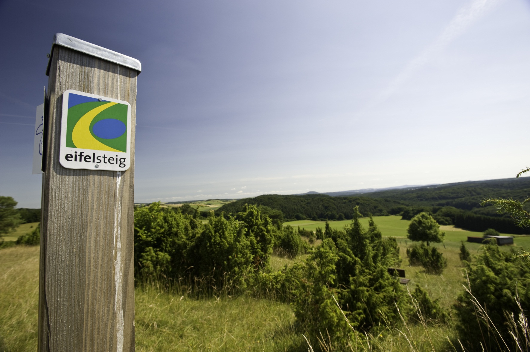 Die spanning valt weg als ik na enkele instructies over de auto naar het NS-station in Eindhoven rijd en rond 10.30 uur wacht op de eerste 7 deelnemers. Druppelsgewijs komen mijn medereizigers allen mooi op tijd bij de auto voor een tijdig vertrek en iets voor 11.00 uur gaan we op pad. Met een tussenstop in Urmond om Hans uit Brussel op te pikken (volle bak dus) en een korte pauze tussen Luik en Verviers, gaat het gezwind door België richting de Zuid-Eifel naar het plaatsje Landscheid. Onderweg zijn al diverse gesprekjes gevoerd, hebben de wandelaars een beetje aan elkaar kunnen wennen en staan ze na een drinkpauze aan de start voor het eerste halve deel van de 13e Eifeletappe: Landscheid-Bruch. Ik heet hen hartelijk welkom namens Aktiva, introduceer mijzelf kort, zeg hen dat ik deze week een loopbaan en een rijbaan heb, en na enkele instructies geht es los: ik loop eerst een stukje mee.