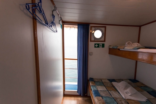Het schip heeft 11 buitenhutten op het bovendek. De hutten zijn uitgerust met een stapelbed of een smal tweepersoonsbed. Alle hutten beschikken over airco en een douche en toilet en zijn eenvoudig ingericht. Iedereen ontvangt 2 handdoeken die tijdens de reis eenmaal gewisseld worden.