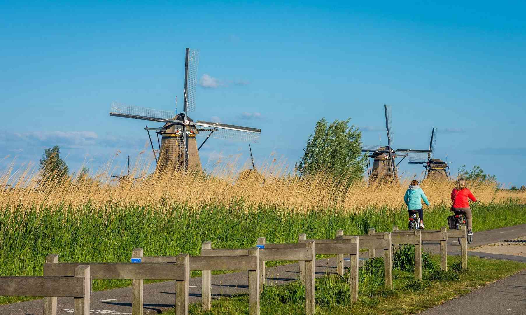 Langs de meest bevaren rivieren en waterwegen van Europa, omgeven door windmolens, koeien en natuur, fietst u door het typisch Nederlandse landschap met verstilde groene dijkjes, eeuwenoude boerderijen, molens, rivieren, meren en plassen. De route voert langs Noordzeeduinen, de havens van Rotterdam en oud-Hollandse vissersdorpen zoals Maassluis en Vlaardingen. Vervolgens door Schiedam met zijn molens en jeneverstokerijen. En in de badplaatsen Scheveningen, Kijkduin en Hoek van Holland is het strand bijna direct naast het fietspad. Een uitstapje hier biedt meer dan alleen een prachtig zandstrand, zon en zee. Er zijn immers ook nog de boulevards om te "slenteren” en te winkelen, alsmede vele cafeetjes en strandpaviljoens.