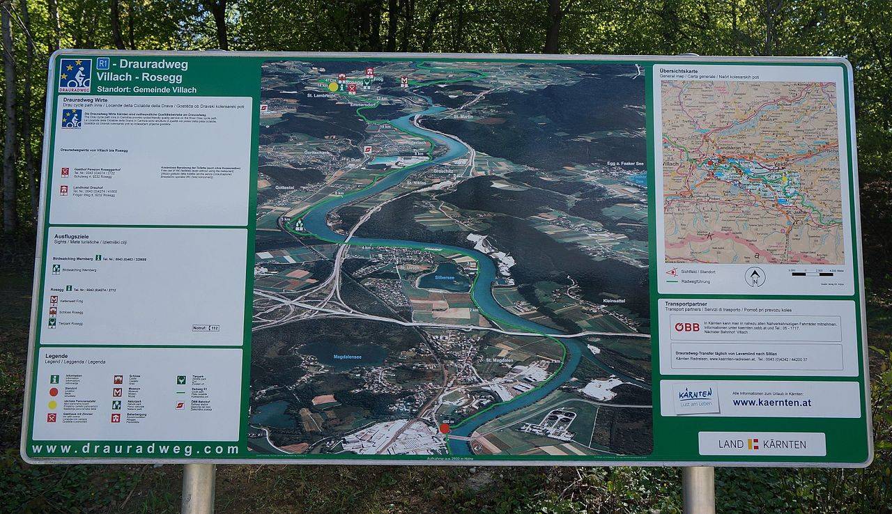 U laat Villach achter u en volgt de Drau Radweg verder naar kasteel Rosegg. In het café van het kasteel kunt u heerlijk pauzeren met een kop koffie of een lekkere lunch. Daarna verder via Maria Elend en Feistritz naar Ferlach. In Ferlach bevindt zich het Buchensenmacher ('geweermaker') Museum en het Carnica-Bijenmuseum. Vanuit Ferlach kunt u een bezoek brengen aan de watervallen van de Tscheppaschlucht, die zich op ca. 6 km fietsen van het centrum van Ferlach bevinden.
