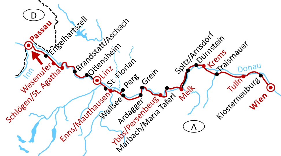 Vanuit de 3-rivieren-stad Passau fietst u achtereenvolgens langs de imposante Donaubocht bij Schlögen, door het uitgestrekte laagland van het Linzer bekken en passeert u de voor de scheepvaart zo beruchte Strudengau en het met sagen en legenden omgeven Nibelungen. Culinair interessant is de wijnstreek Wachau, terwijl elke etappe wel een cultureel-historisch hoogtepunt kent: de Sankt Stephans Dom in Passau, de abdij Wilhering, de hoofdstad van Oberösterreich Linz en het Donaustadje Grein. En natuurlijk als hoogtepunten de imposante abdijen van Sankt Florian, Melk en Klosterneuburg, en de Wachauer stadjes met burchten en ruïnes. De fietsvakantie eindigt in de Oostenrijkse hoofdstad Wenen, die als residentie van de Oostenrijkse keizers meer dan zeven eeuwen het middelpunt van een wereldrijk en cultureel centrum van Europa was.