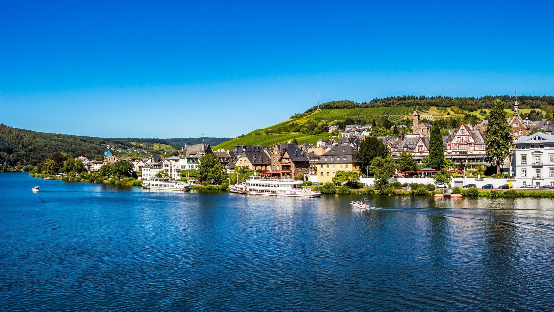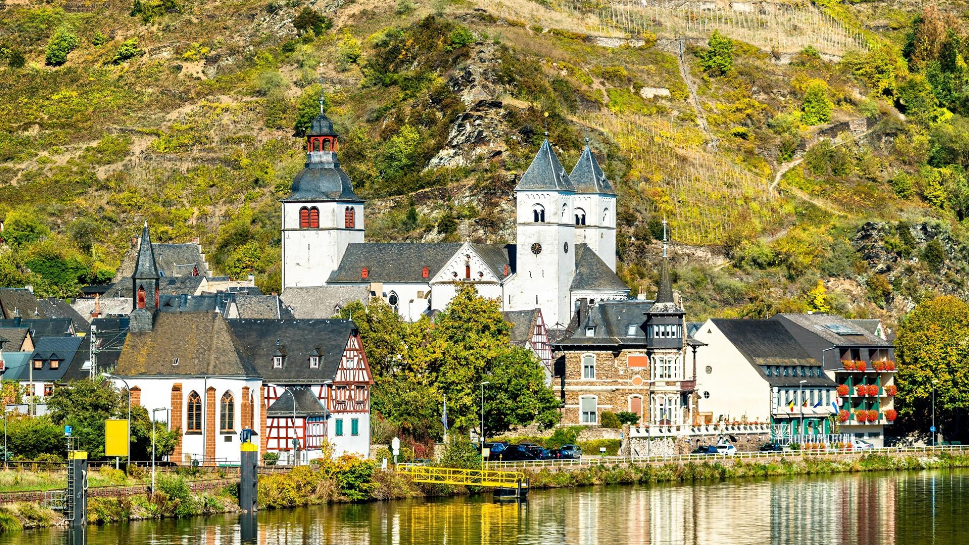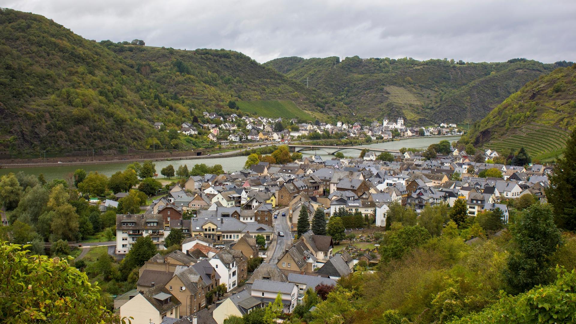 Na het ontbijt fietst u richting het treinstation van Treis-Karden om op de trein (vertrek elk uur) naar Traben-Trarbach te stappen (niet inbegrepen, ca. € 10,- p.p.). Het romantische stadje ligt aan een smalle bocht in de Moezel en is omringd door wijngaarden en bossen. Traben-Trarbach heeft een aantal indrukwekkende bezienswaardigheden. Vooral de Brückenstranke met haar ronde torens is een bezoekje waard. Na een bezoek aan Traben-Trarbach fietst u langs de meanderende Moezel naar het beroemde wijnstadje Zell, idyllisch gelegen aan een van de mooiste en grootste meanders van de Moezel, de Zeller Hamm. Gelegen tussen steile wijngaarden en de Moezel vindt u in Zell talloze fraaie vakwerkhuizen met steile gevels, smalle straatjes en delen van de oude stadsmuur waarvan de 'ronde toren' het meest in het oog springt. Via Bullay en Nehren fietst u terug naar Treis-Karden.