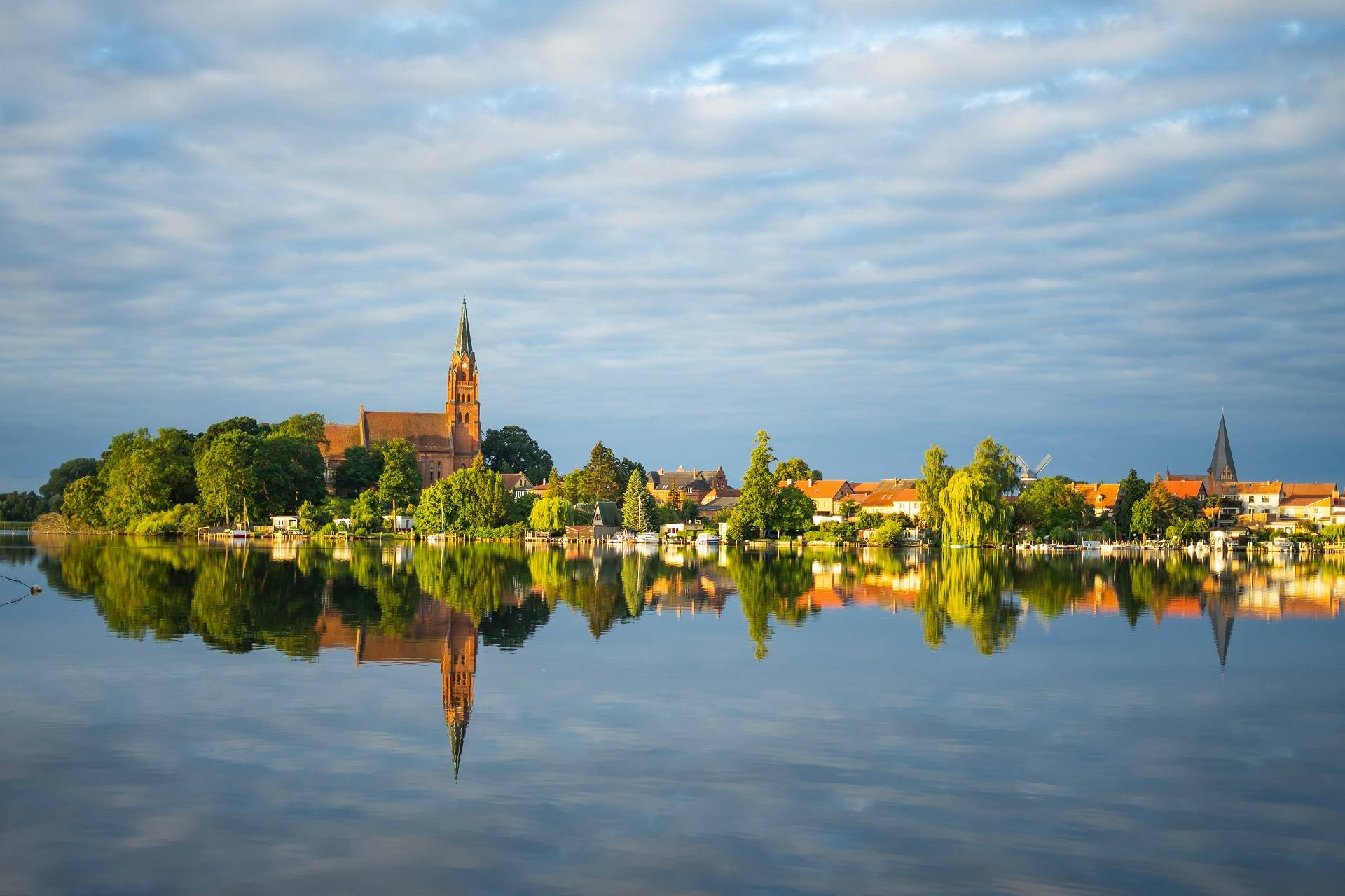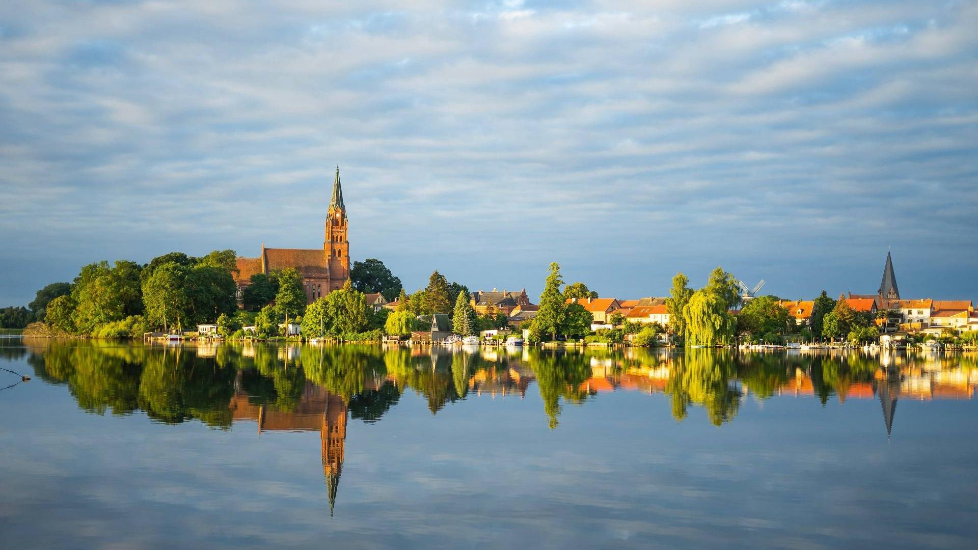 Het gebied rondom het op één na grootste binnenmeer van Duitsland: de Müritz wordt ook wel "Das Land der 1.000 Seen" genoemd. En dat is niet overdreven, want het zijn er 1117 om precies te zijn! Daar zitten natuurlijk ook hele kleintjes bij, maar het moet gezegd dat al die verschillende waterpartijen fraai gelegen zijn in de bosrijke natuur. Uitgestrekte meren- en weidelandschappen, maar ook levendigheid en gastvrijheid in de dorpen en stadjes waar u komt, zijn onderdeel van deze mooie fietsreis. Het terrein is vlak tot (licht-)glooiend, en u ziet water in welke richting u ook kijkt. Het landschap van bos en water maakt de regio het Mecklenburgs Merenplateau een regio die in Duitsland ongeëvenaard is. Het Müritzmeer en omgeving is zelfs een heus nationaal park. De Mecklenburger Radweg die u voor een deel volgt, gaat kriskras tussen al die rustieke meren door. Een tip: neem, als u er eentje heeft, een verrekijker mee: want waar anders bestaat zo’n goede gelegenheid om kraanvogels, vis- en zeearenden te observeren?