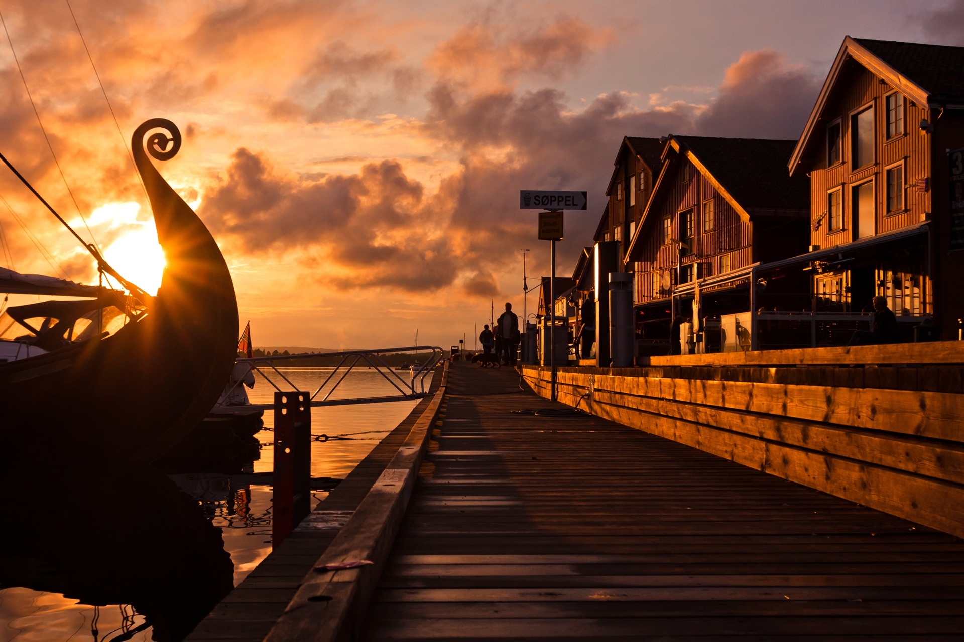 Het eerste deel van de route volgt de kustlijn met schitterende uitzichten over de fjord. In de buurt van Borre passeert u het historische centrum van Midgard, met indrukwekkende grafheuvels uit de Vikingtijd. Even verder bereikt u Åsgårdstrand, waar kunstenaar Edvard Munch vele zomers doorbracht – zijn huis is nu een klein museum. Vervolgens komt u in Tønsberg, de oudste stad van Noorwegen, waar u in de haven een replica van het beroemde Oseberg-schip kunt bewonderen. Daarna fietst u door uitgestrekte landbouwgebieden en langs idyllische dorpjes tot u Sandefjord bereikt. In de avond brengt een ferrytocht van ongeveer 2,5 uur u naar het Zweedse Strömstad, aan de oostelijke oever van de fjord.