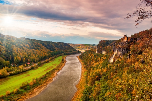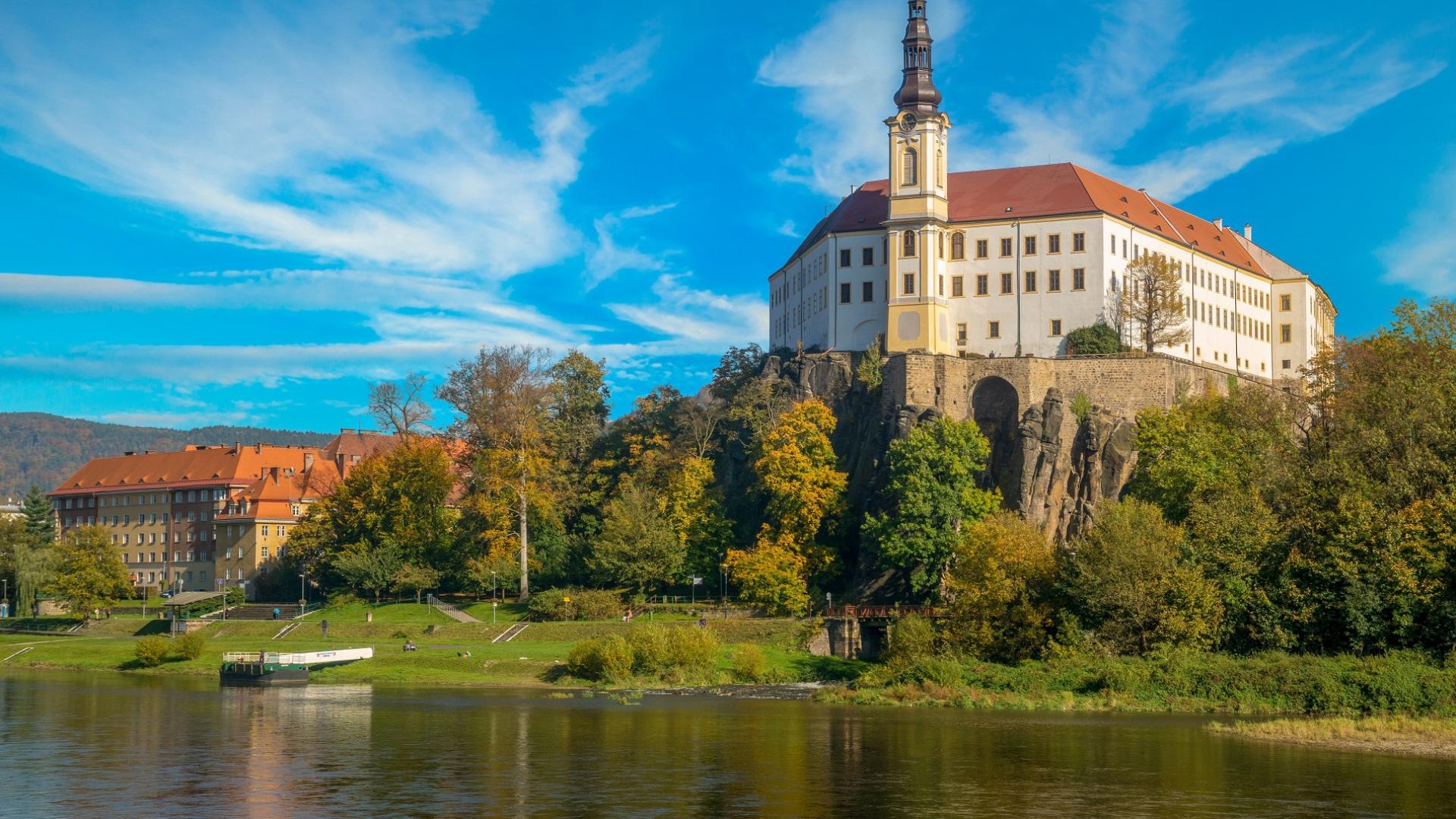 Een fraaie tocht door het romantische landschap van het Boheemse Middelgebergte. Hoewel dit bosrijke gebied behoorlijk heuvelachtig is, fietst het vlak langs de Elbe heerlijk ontspannen. De brede rivier buigt hier naar het noorden af, waar zij zich miljoenen jaren geleden door het zandsteengebergte een doorgang heeft verschaft — wat heeft geleid tot de vorming van de meest indrukwekkende rotsformaties. Onderweg komt u langs de kleine brouwerij Březňák; een verfrissend drankje mag hier natuurlijk niet ontbreken. Langs het slot van Děčín fietst u de stad binnen, voor een laatste overnachting op Tsjechische bodem.