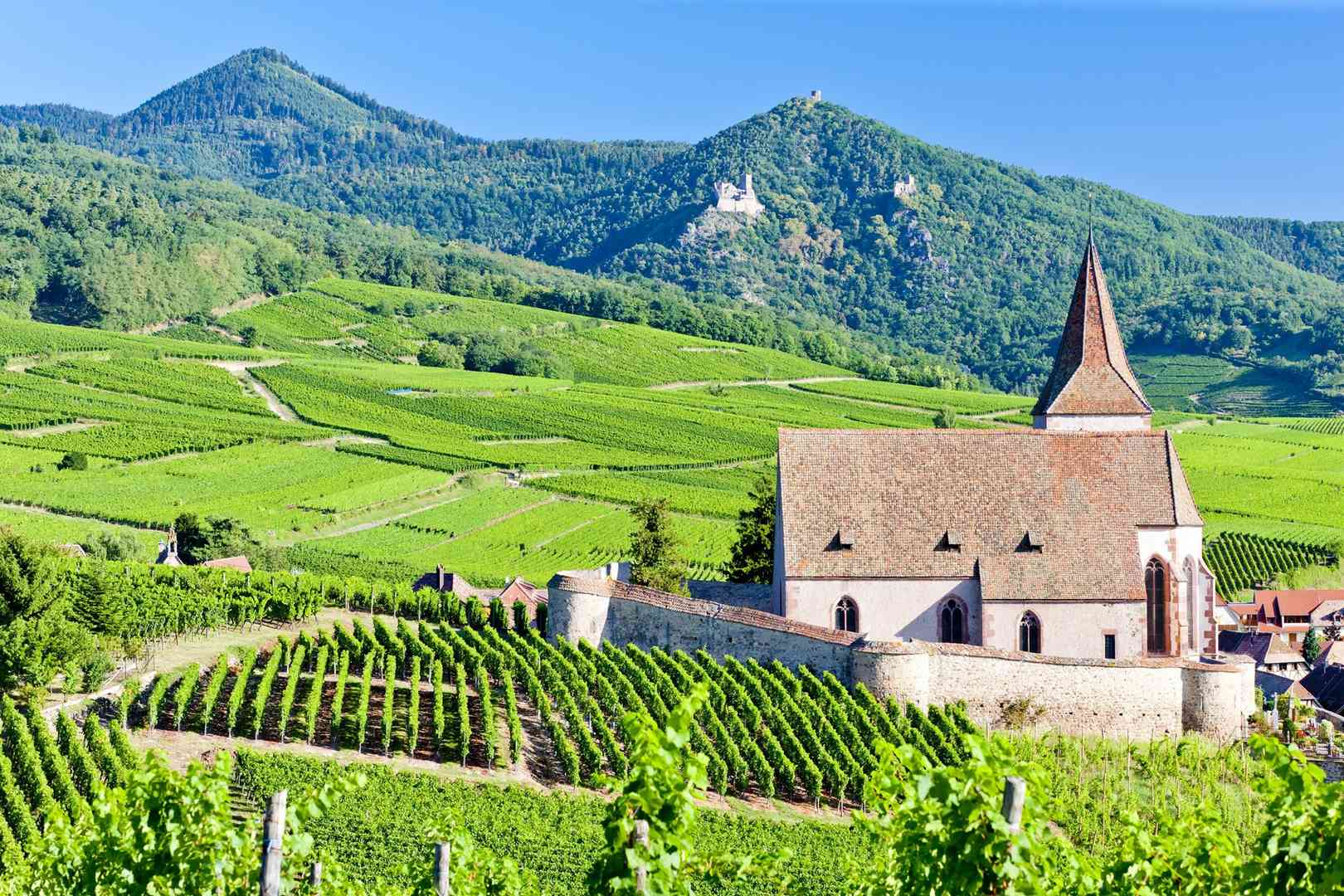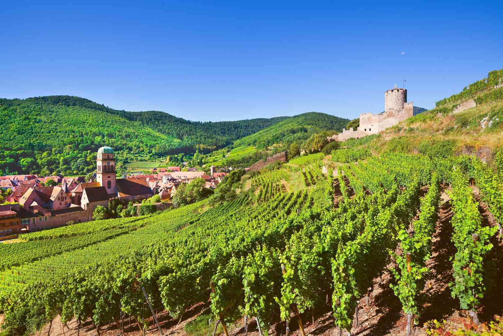 Aan de voet van de Vogezen volgt u de Route des Vins (de oudste wijnroute van Frankrijk) door Eguisheim, Turckheim en Kaysersberg. Wist u dat in deze wijndorpen de beste wijnen van de Elzas verbouwd worden? Een korte pauze onder het genot van een glaasje wijn is hier dus zeker geen verkeerd idee. Na een bezoek aan Kaysersberg, de geboorteplaats van Albert Schweitzer, fietst u verder over de Route du Vin naar Riquewihr. Deze parel heeft alles: een prachtige ligging in de wijngaarden, de bestbewaarde vakwerkhuizen van de Elzas en historische stadsmuren. Ook aan de innerlijke mens wordt gedacht, er zijn tal van gezellige 'Winstubs' en restaurants te vinden waar u heerlijke streekgerechten kunt uitproberen.