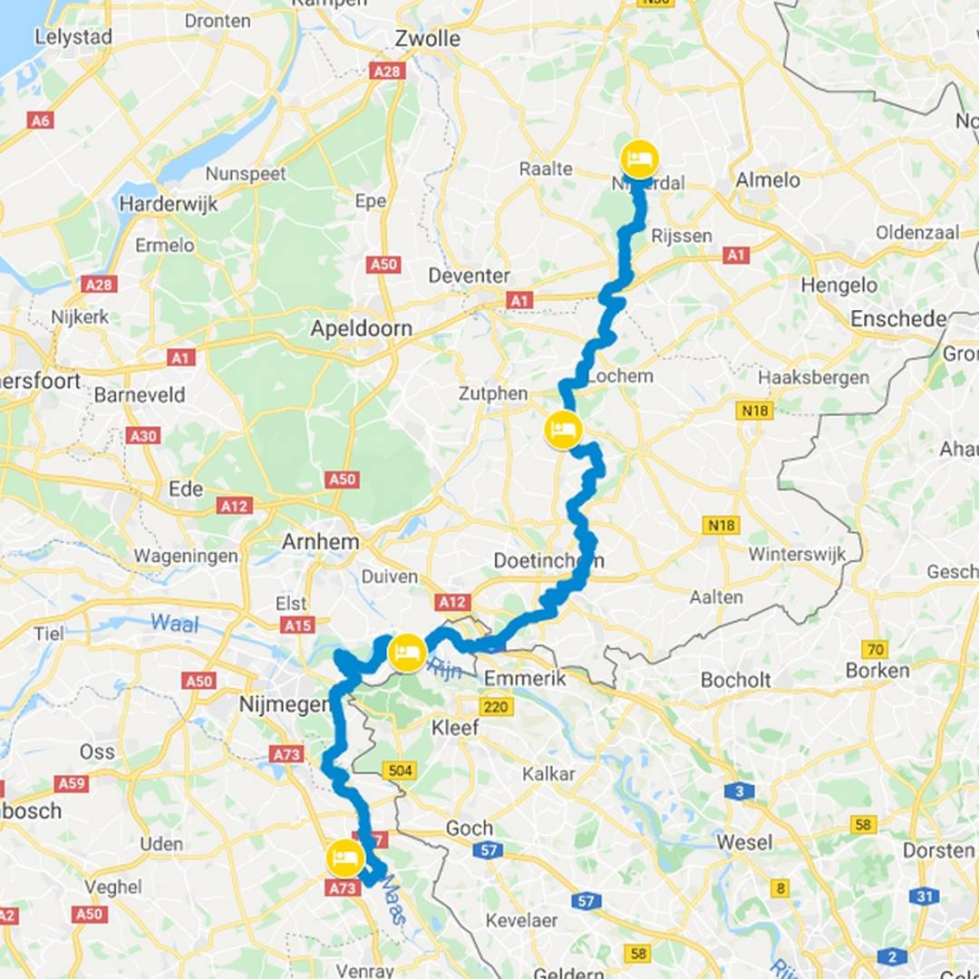 | Dag 2 | Vorden/Almen | Hotel Bakker, Hotel Gravin van Vorden Hotel de Hoofdige Boer Hotel Landgoed Ehzerwold |