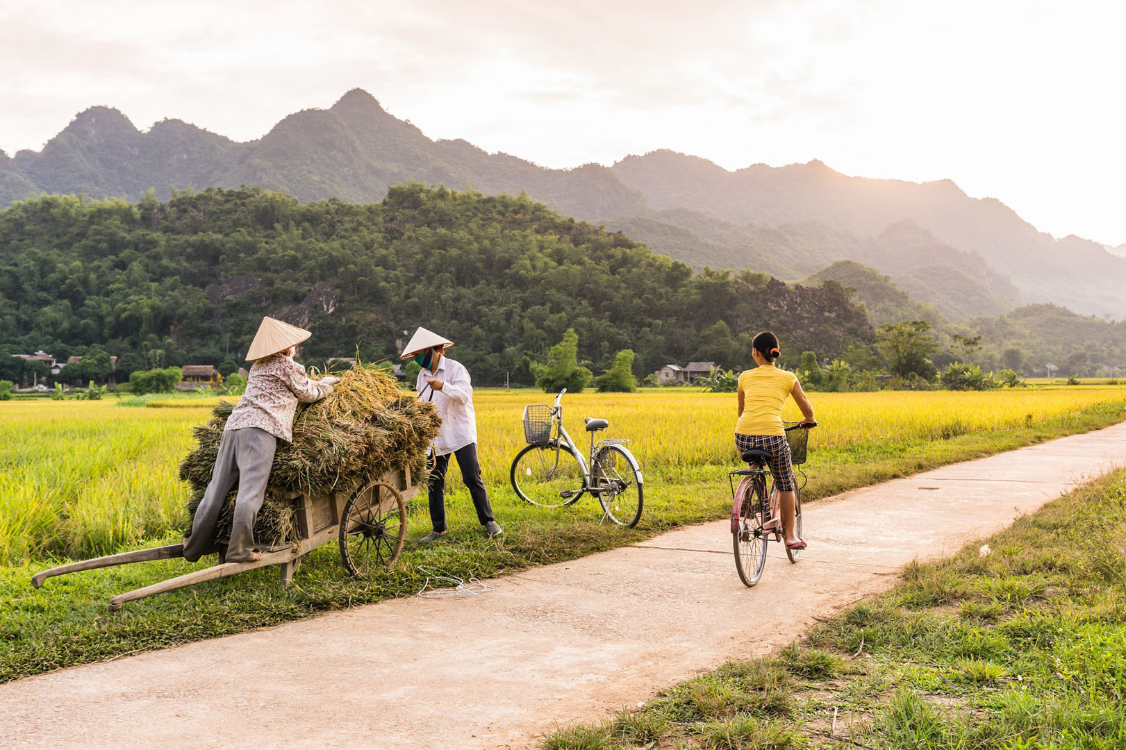 Na het ontbijt stappen we bij ons hotel op de bus naar Mai Chau. Zodra we de stad uit rijden wordt het landschap steeds bergachtiger en genieten we van schitterende panorama's tijdens de rit. Aan het begin van de middag arriveren we bij onze homestays in Mai Chau. Na de lunch bij een lokale familie stappen we voor het eerst op de pedalen en fietsen we door de sprookjesachtige valleien van Mai Chau. Onderweg worden we begeleid door kronkelende beekjes en fluitende vogels. De route gaat verder door diverse 'White Thai' dorpjes die worden afgewisseld met rijstvelden en uitgestrekte natuur. Vanavond is het diner inclusief en genieten we van een traditionale dansshow van de lokale bevolking en slapen we in huizen op palen.