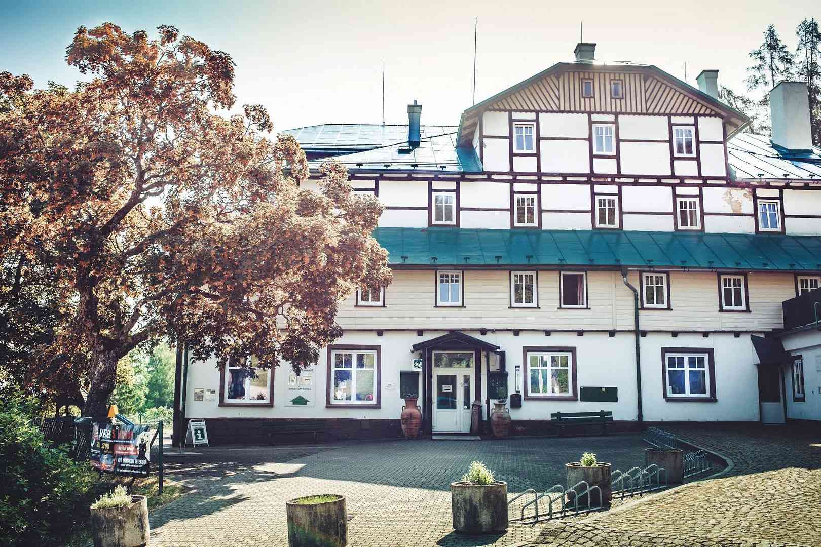 De uitvalsbasis voor deze afwisselende wandelweek is een gezellig familiehotel van sympathieke Nederlandse eigenaren. Het is een 'Luftkurort-hotel' uit het eind van de 19e eeuw maar fraai gerenoveerd, gelegen aan de bosrand bij het kleine dorp Bila Tremesna.