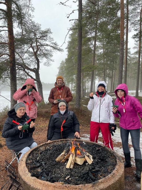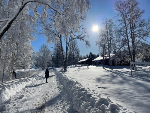 Na het ontbijt maken we een ontspannen rondleiding door Johannisholm en leren we iets over de geschiedenis ervan. Daarna trekken we onze sneeuwschoenen (inbegrepen) aan en maken we een mooie wandeling door het bos en op de heuvel. We genieten van een mooi wit wonderland. Onderweg maken we een kampvuur waarop we worstjes grillen voor de lunch, waarna we weer terug naar onze accommodatie lopen.