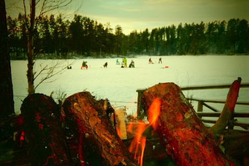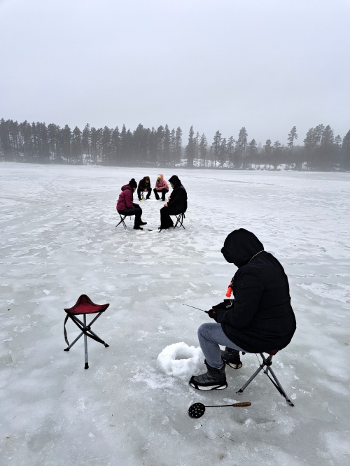 Na een heerlijke vrije dag staat vandaag in het teken van ijs. Vanochtend staat ijsvissen op het programma. We maken een gat in het vismeer en hopelijk vangen we wat. Om ons warm te houden maken we een vuur en nemen we warme drankjes mee. De eventuele vangst kunnen we meteen op het vuur bereiden. Na de lunch gaan we schaatsen op een van de meren in de omgeving van onze accommodatie.