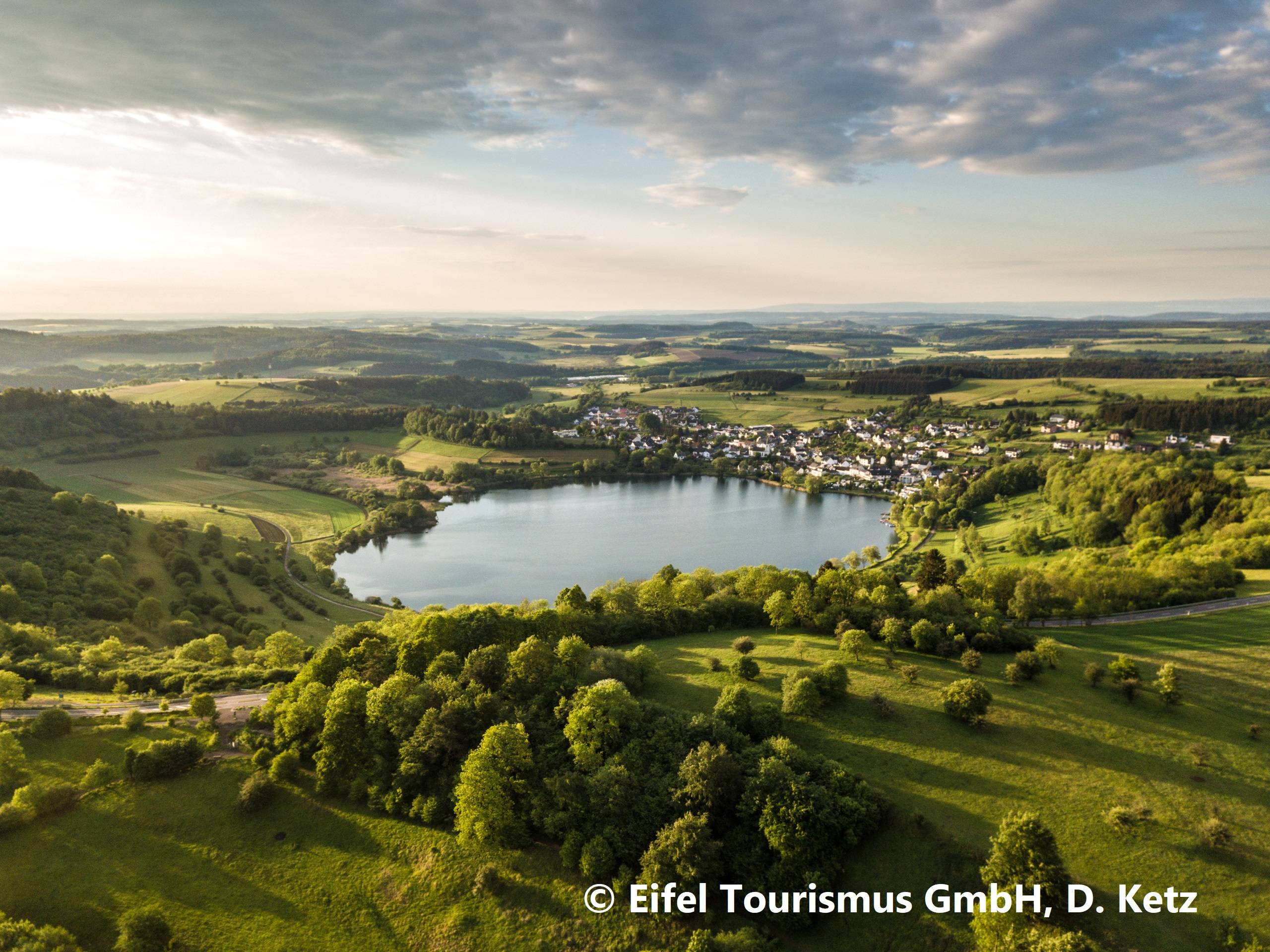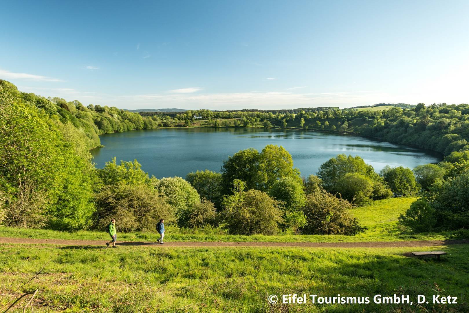 De Eifelsteig is een zorgvuldig samengestelde wandelroute door een prachtig heuvellandschap tussen de steden Aachen (Aken) en Trier. Bekend van de Eifel is dat het gebied bosrijk is en een variatie kent aan naald- en loofbomen en plateaus met mooie uitzichten. De Kasselburg in Gerolsteiner Land en de Nerother Kopf vlakbij ons hotel zijn daar sprekende voorbeelden van. Halverwege de route, voorbij Daun, verandert het landschap van karakter. Markant zijn de ruim 80 rondvormige vulkanische kratermeren, die Maare worden genoemd, tusen Daun en Manderscheid in de Vulkaneifel.