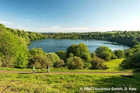 Deze wandeling gaat langs een aantal zogenoemde 'maren' (Maare). Miljoenen jaren geleden hebben enorme explosies en vuur uit het binnenste van de aarde hier in de Eifel gaten geslagen en bergen opgeworpen. De gaten heten maren en een aantal heeft zich op den duur met water gevuld. We wandelen langs de Gemünder Maar, de Weinfelder Maar en de Schalkenmehrener Maar. Daarna leidt de wandeling ons naar het groene dal van de Lieser. Het kleine riviertje kabbelt schilderachtig voort. We blijven in het lange dal tot het eindpunt: het burchtenstadje Manderscheid met een boven- en benedenburcht.