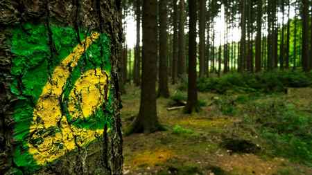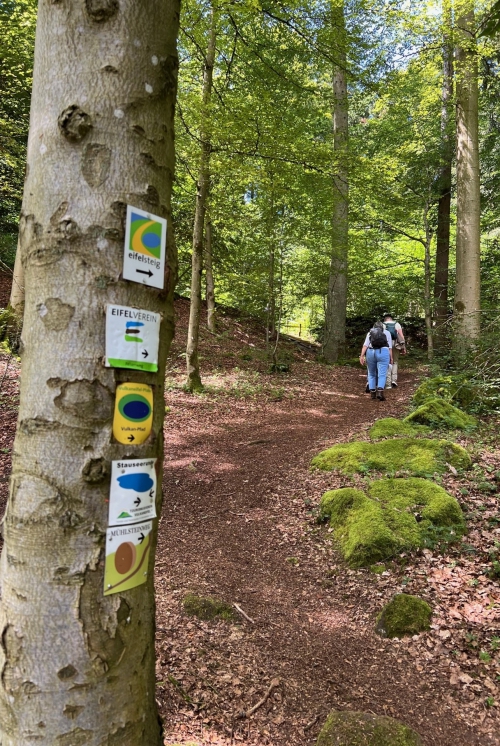 De markering van de Eifelsteig is typisch Duits te noemen: 100% nauwkeurig met bordjes en de app. Fout lopen is bijna onmogelijk en we blijven steeds letterlijk van alles op de hoogte door tableaus met kaarten en informatie over het landschap en de natuur langs de route.