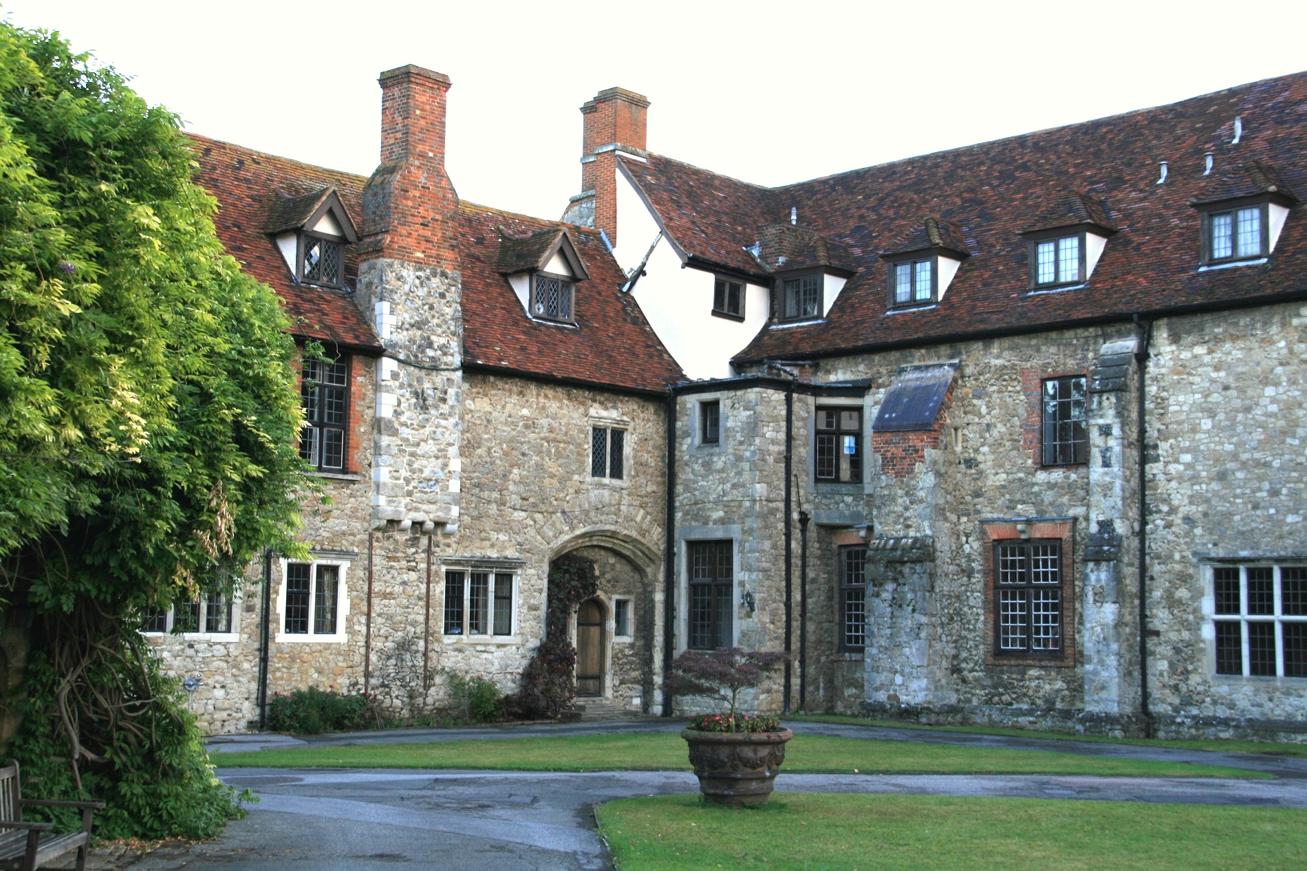 Ons verblijfadres is eenvoudig en uniek tegelijk: we verblijven in het gastenverblijf, genaamd The Friars (letterlijke betekenis van 'friar': monnik van bepaalde kloosterordes zoals de karmelieten), van een eeuwenoud gemoderniseerd klooster: de Aylesford Priory. Het klooster wordt omgeven door een parkachtige tuin van vele hectaren, direct aan het riviertje de Medway. We hebben zowel kamers die toilet en douche delen, als kamers met eigen sanitair.