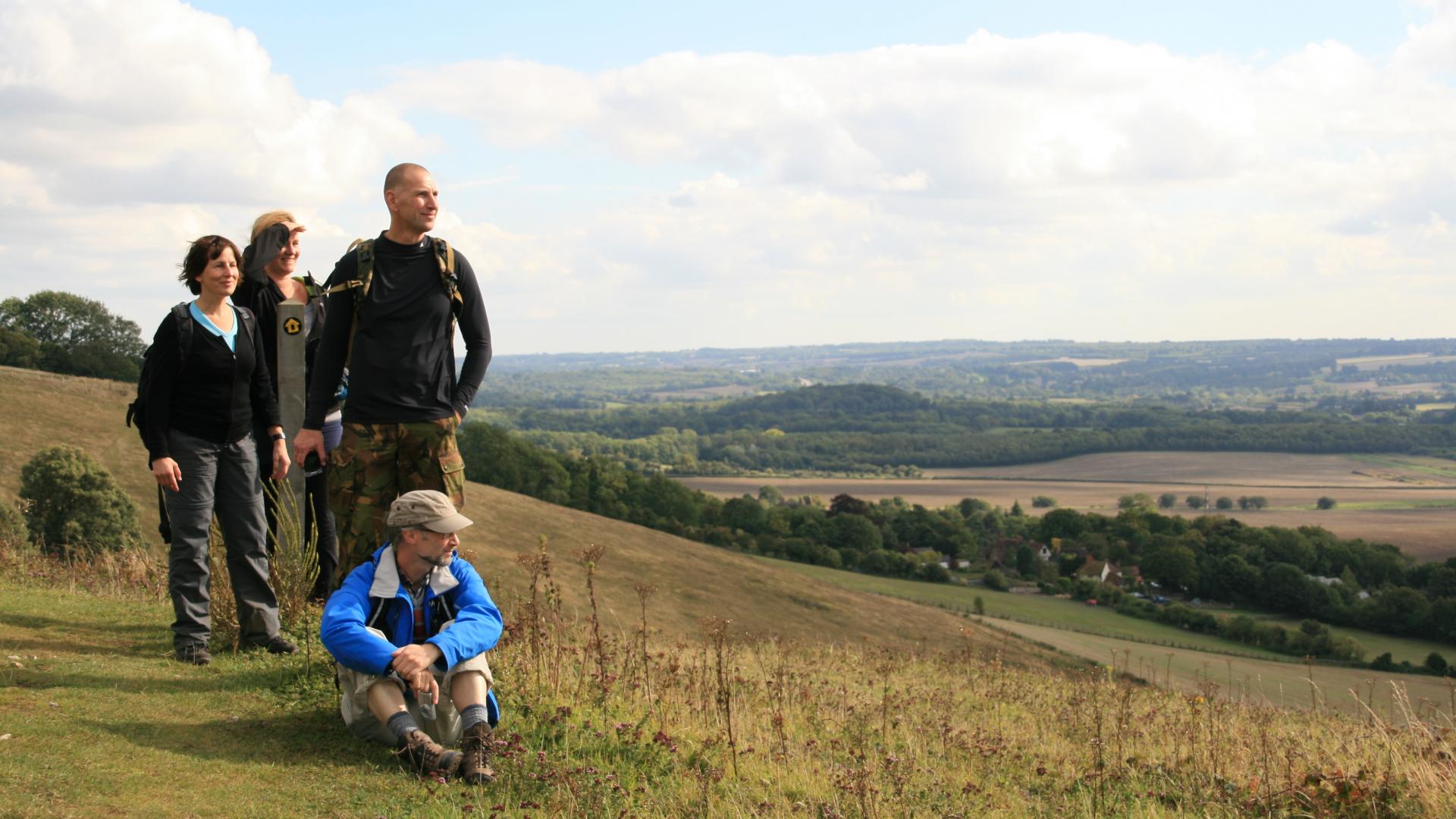 We lopen tijdens deze wandelvakantie twee etappes van de Medway Valley Walk en ook twee dagtrajecten over de North Downs Way: een lange-afstand-wandelpad door fraaie stukjes loofbos en agrarisch landschap met mooie uitzichten over de weidse omgeving. Het landschap is typisch Engels met vele holle weggetjes met hoge heggen langs weiden en akkers die begrensd zijn door muurtjes waarover de wandelroutes soms met trapjes gaan. Het reliëf is meestal glooiend, soms even heuvelachtig.