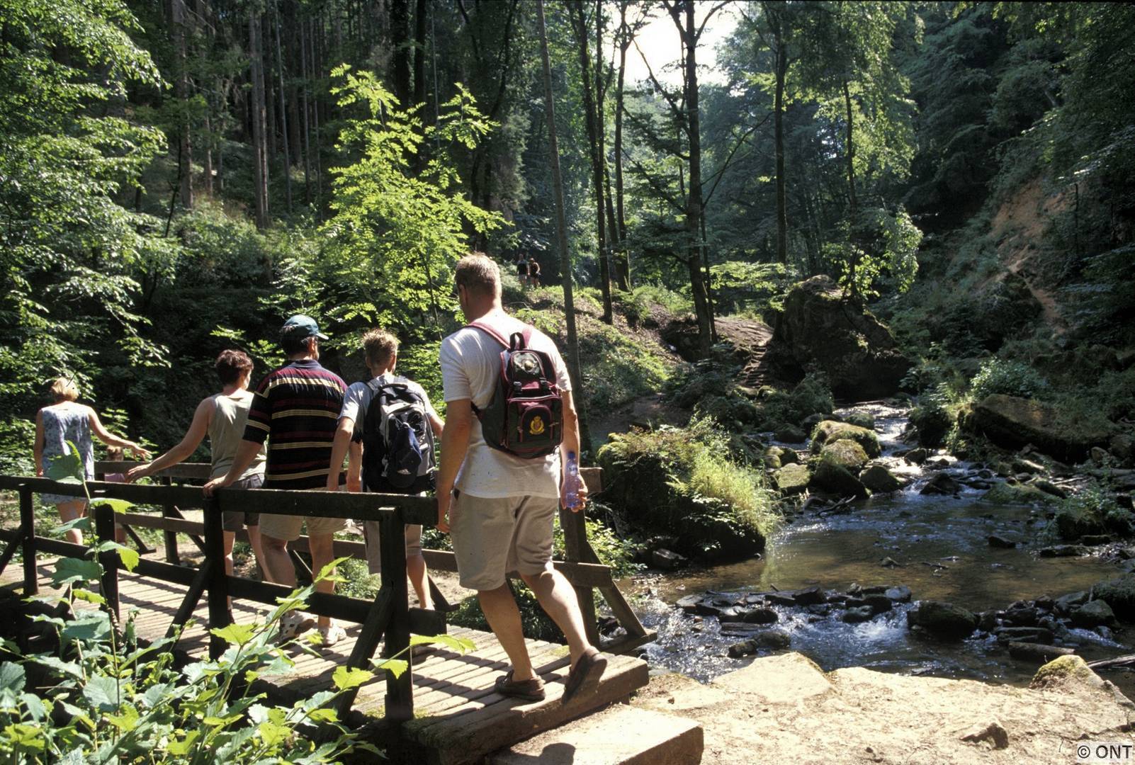 De aantrekkelijkheid van het natuurpark Kleine Luxemburger Schweiz (letterlijk Luxemburgs Klein Zwitserland) zit hem vooral in de variatie van de omgeving: plateaus met weiden en velden, en beboste dalen doorkliefd met snelstromende beekjes. Plus vooral de unieke door wind en water gevormde rotspartijen, en de wandelpaden slingeren zich daar langs en over en door heen. De reisleider brengt u dagelijks per minibus naar de wandelpaden van de Müllerthal Trail en terug naar het hotel. De routes zijn zó samengesteld dat meestal onderweg en op het eindpunt een kom soep of kop koffie verkrijgbaar zijn. U ontvangt een route-uitleg, maar de markeringen zijn sowieso zó goed dat u beslist niet fout kunt lopen! In het gebied is het vooral in de lente en de herfst uitzonderlijk rustig.