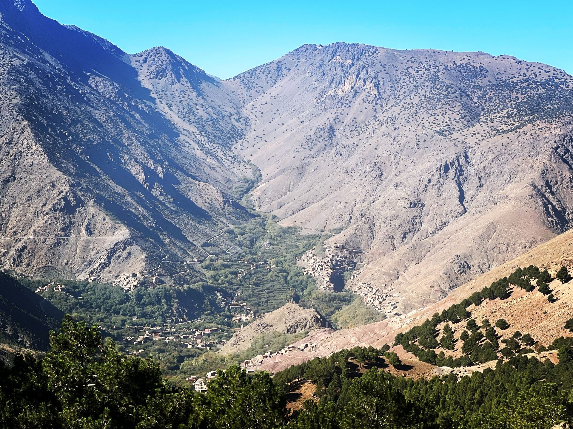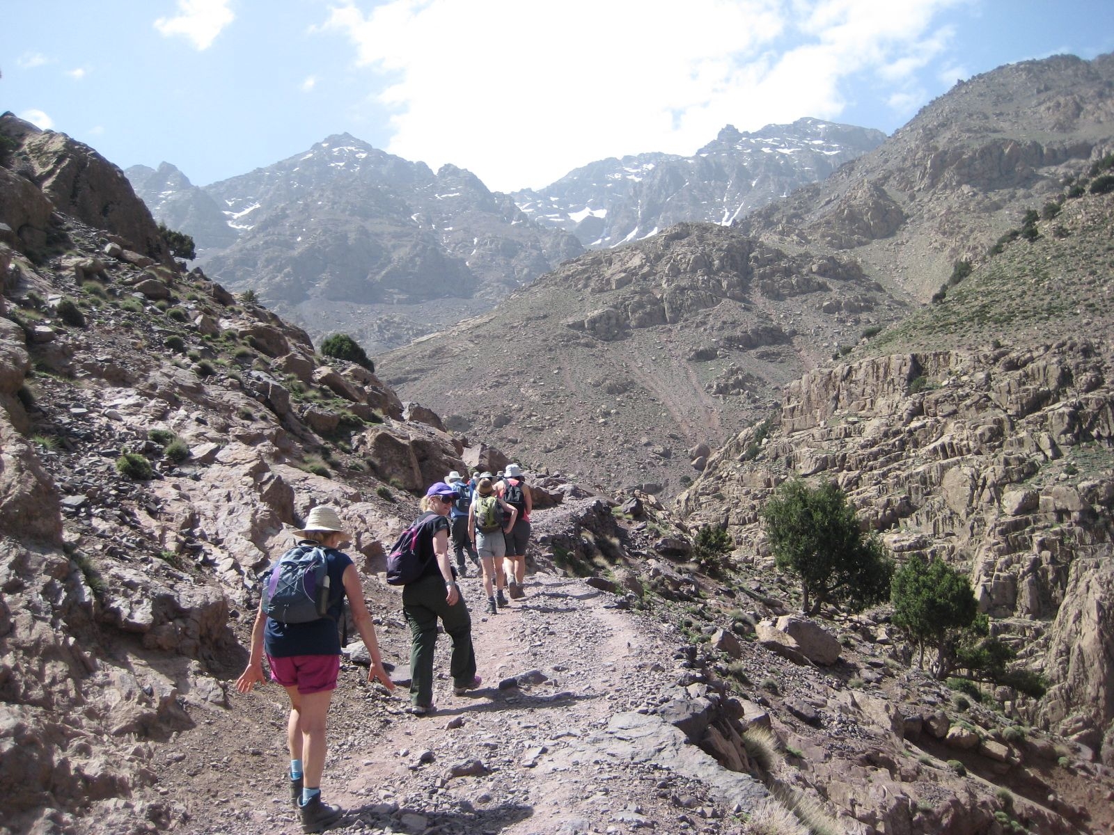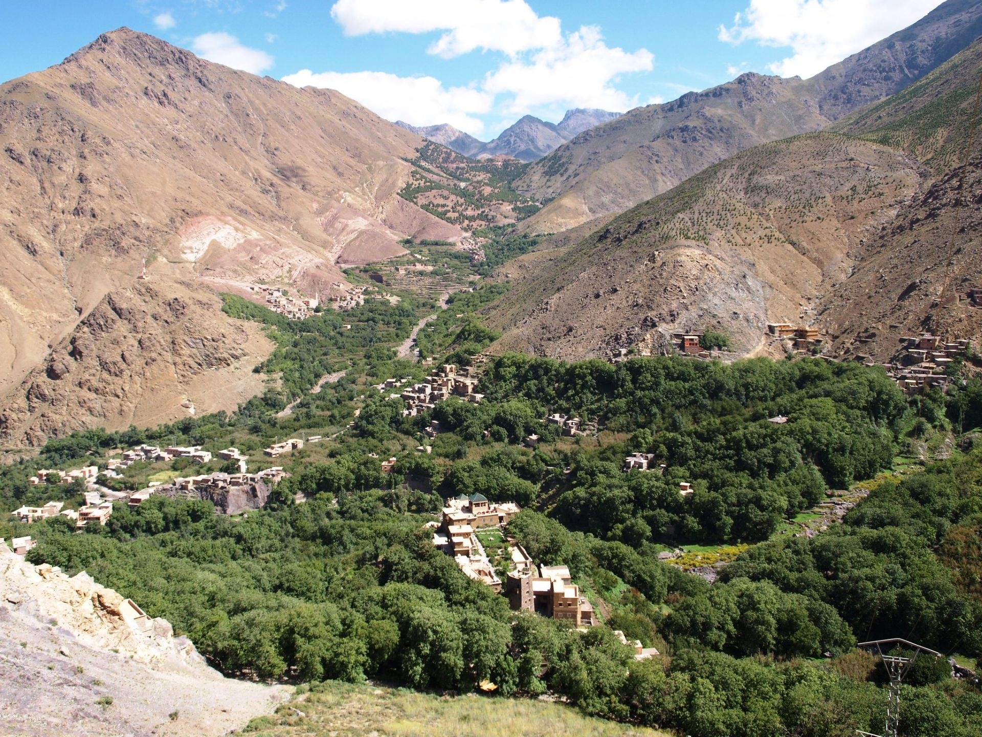 Na het ontbijt verlaten we Tachedirt (2300 m.) en wandelen we bergafwaarts door de Imnane-vallei. We passeren diverse mooie berberdorpen, zoals Ouanskra, Tamguist en Ikkis. Bij Ikkis aangekomen, steken we de rivier over en volgen we een pad omhoog naar de Tizi n'Aguersioual-pas (2050 m.), vanwaar we een prachtig uitzicht hebben over de Imlil-vallei en opnieuw de Imnane-vallei. We dalen verder af tot we Aguersioual passeren, waar we lunchen aan de rivier. Na de picknicklunch wandelen we nog een uur naar het dorp Matat (1850 m.), waar we overnachten in een lodge. De wandeling duurt ca. 5 uur.