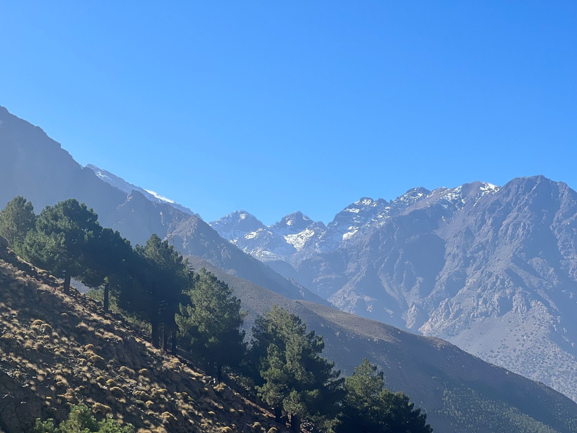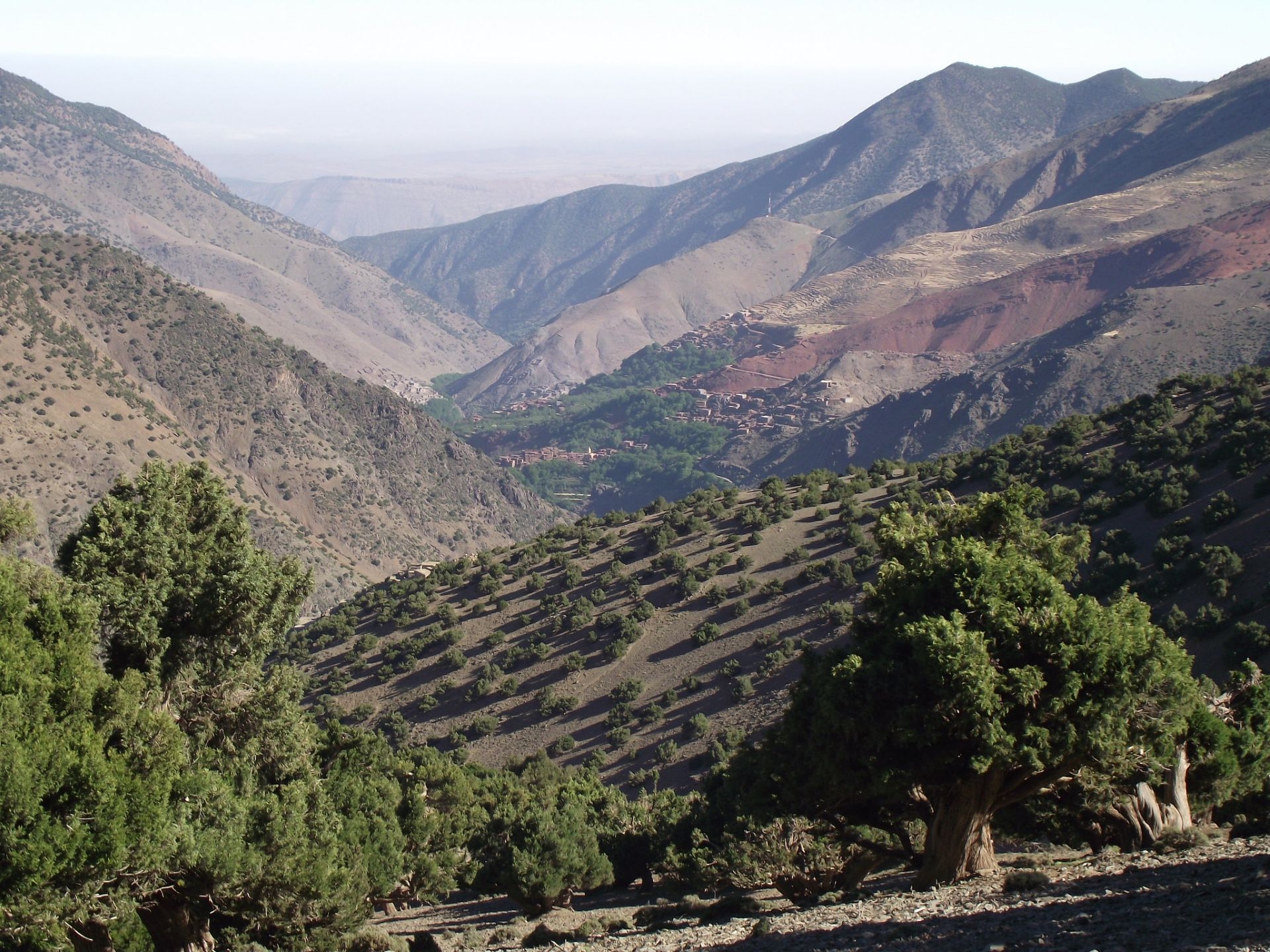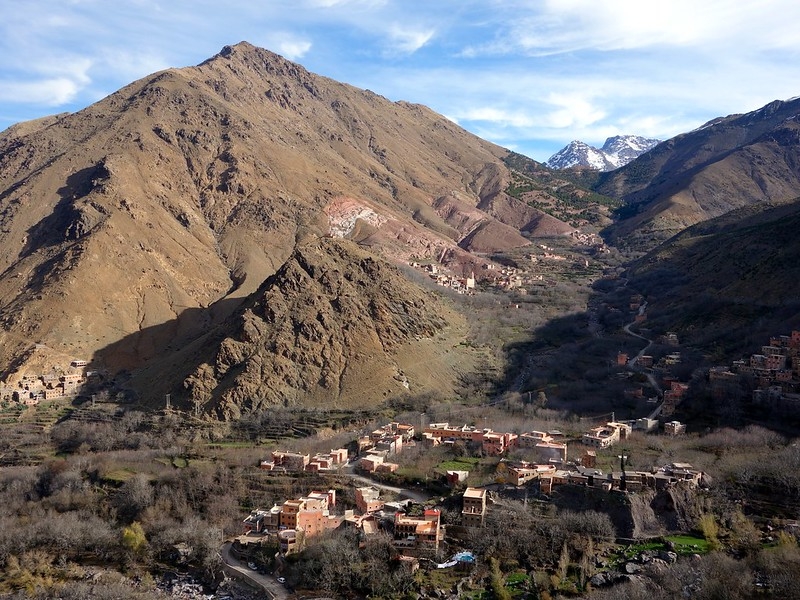 Na het ontbijt verlaten we Tachedirt (2300 m.) en wandelen we bergafwaarts door de Imnane-vallei. We passeren diverse mooie berberdorpen, zoals Ouanskra, Tamguist en Ikkis. Bij Ikkis aangekomen, steken we de rivier over en volgen we een pad omhoog naar de Tizi n'Aguersioual-pas (2050 m.), vanwaar we een prachtig uitzicht hebben over de Imlil-vallei en opnieuw de Imnane-vallei. We dalen verder af tot we Aguersioual passeren, waar we lunchen aan de rivier. Na de picknicklunch wandelen we nog een uur naar het dorp Matat (1850 m.), waar we overnachten in een lodge. De wandeling duurt ca. 5 uur.