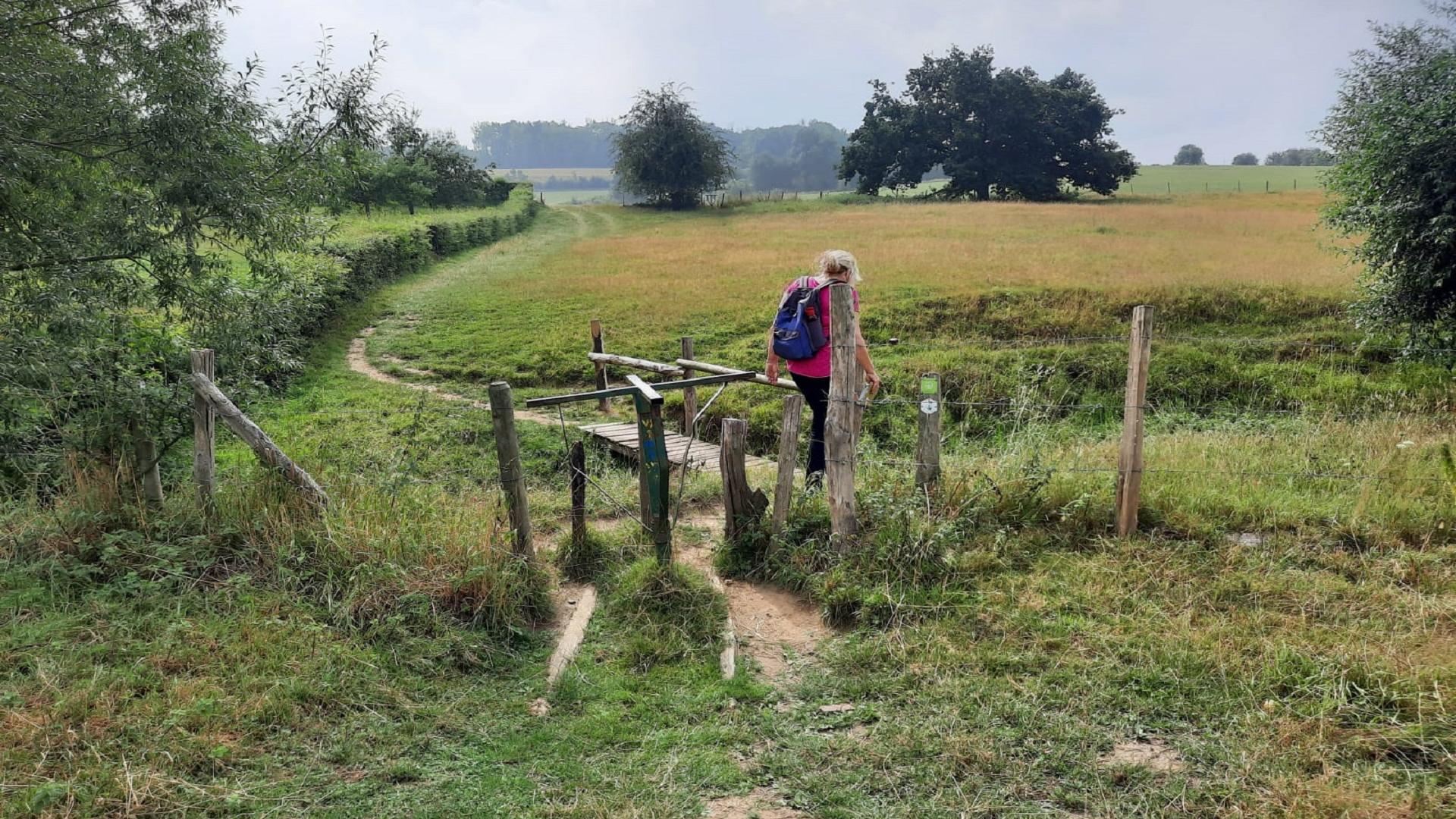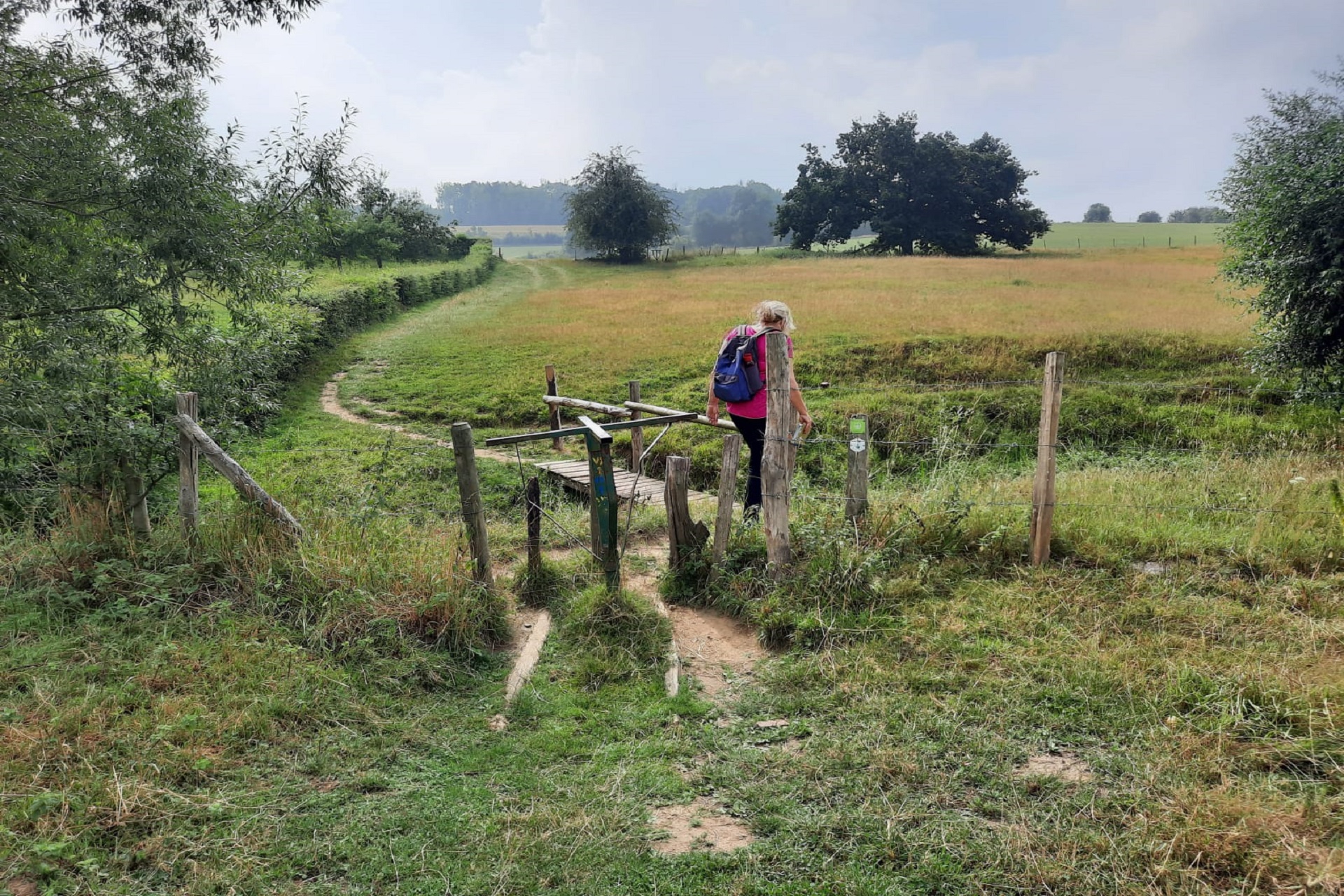 De Voerstreek oogt vergelijkbaar met Zuid-Limburg: dezelfde holle heuvelweggetjes met kruisbeelden en kapelletjes onderweg, en ook dezelfde afwisselende lappendeken van bos, weiden en akkers…. Opvallend is er dat soms stukjes weiland recht of diagonaal overgestoken moeten worden, speciaal daarvoor zijn dan hekjes en poortjes geplaatst die wandelaars even moeten openen en weer sluiten.