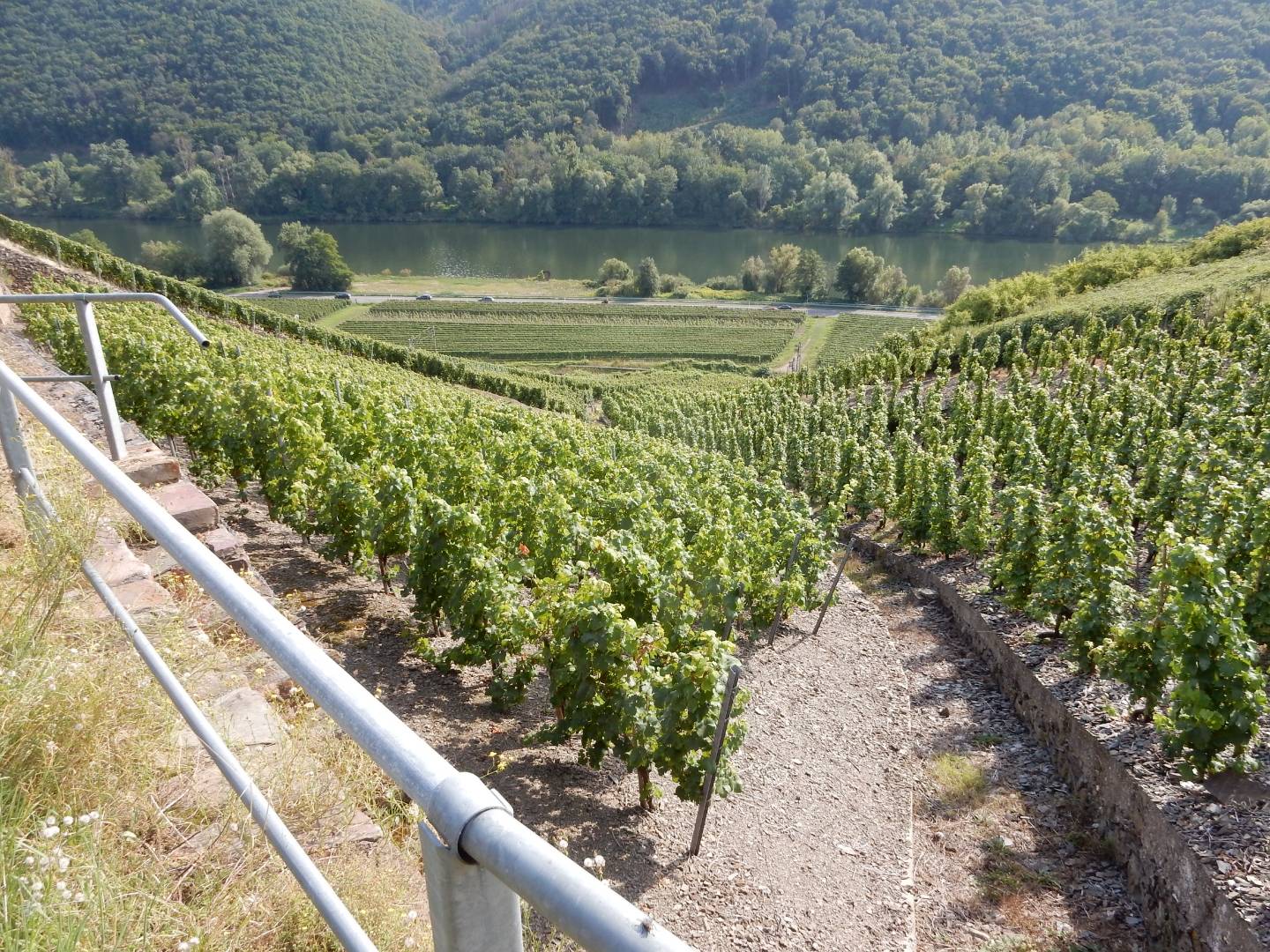 De Moselsteig is een wandelroute langs het Duitse deel van de Moezel, over een lengte van maar liefst 365 kilometer, slingerend benedenlangs en boven de rivier. Startpunt is Perl, dat tegenover Schengen (ja, van het Europese verdrag uit 1992) ligt. Het eindpunt is Deutsches Eck in Koblenz, het punt waar de Moezel in de Rijn stroomt. De Moselsteig is ’geopend’ in 2014 en kreeg toen direct het keurmerk ’Qualitätsweg Wanderbares Deutschland’. Want behalve wunderbar is de Moezelstreek ook 100% zeker ’wanderbar’!
