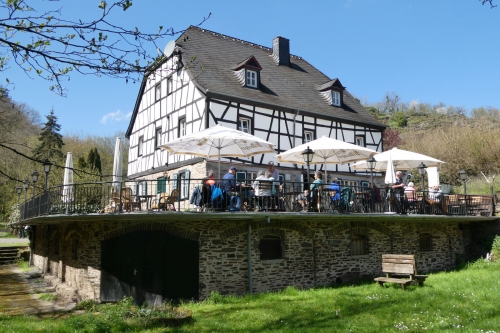 We wandelen vanaf de Pyrmonter Mühle omhoog naar een plateau, vanwaar een weids uitzicht over de omgeving. De route gaat over de Heidberg en verder naar het hoogste punt: de Sammetzkopf, waar een groot kruis staat en een steen met informatie over de omgeving. We lopen het natuurgebied van de Juckelberg binnen en dalen door de bossen af naar het dal van de Elzbach. Het wandelpad passeert regelmatig verschillende steile rotswanden. Aan het einde passeert de wandeling Burg Pyrmont, een fraai gelegen burcht die nog intact is en bezichtigd kan worden. Daarna volgt een laatste flinke afdaling naar de Pyrmonter Muhle (restaurant/terras), waar de Elzbach via een fraaie stroomversnelling een aantal meters omlaag valt. Pyrmonter Mühle-Deurne Station (ca. 230 km) per minibus (14.00-17.00 uur). Einde van deze singlereis Duitsland.