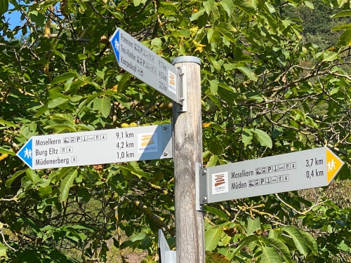 We wandelen via de Martberg en de indrukwekkende burcht Eltz. Op de Martberg tussen Pommern en Karden bevond zich 180 meter boven de Moezel eens een Keltische nederzetting, vergelijkbaar met een ware stad. In het midden hiervan ontstond een Romeins tempelcomplex. Delen zijn gereconstrueerd en kunnen bezocht worden. De wandeling eindigt in het wijndorp Moselkern met smalle en steile straatjes, gelegen aan de monding van de Elzbach. Bezienswaardig is het mooie vakwerkraadhuis uit 1673. De route heeft 3 flinke stijgingen.
