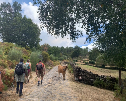 Het prachtige uitzicht vanuit de lodge verleidt ons om de natuur in te trekken en dat doen we dan ook! We wandelen in een heuvellandschap. In deze streek van herders bestaat nog de 'vezeira', waarbij elke familie om de beurt een herder levert om de kuddes van het hele dorp te hoeden. Tot enkele decennia geleden trokken de boerenfamilies met hun vee heen en weer tussen de zomer- en winterdorpen. Getuigen hiervan in het landschap zijn de kleine nederzettingen van iglo-achtige hutten, ook wel 'brandas' genoemd. Vandaag wandelen we in de hoogvlaktes van Ermida, waar enkele lokale koeienrassen grazen. We zien zeker het Barrosa-rund, dat vroeger werd gebruikt als trekdier. Ook zien we de Garranos, de lokale wilde paarden.