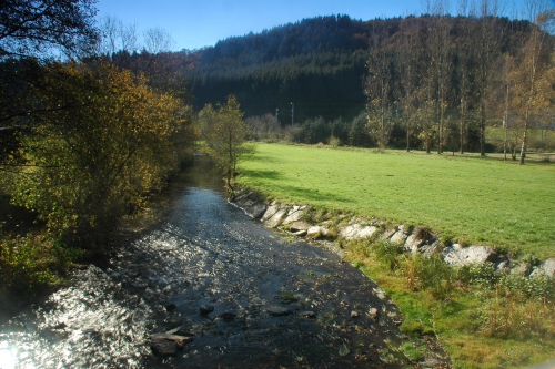 We nemen eerst de trein naar Goebelsmühle (17 inwoners en een station!) (18 min.). We wandelen door het dal van de Clerf via de kleine dorpjes Lellingen en Pintsch (met een mooie kerk met barok interieur uit 1737) naar Drauffelt. Iets voor Kautenbach met het hoog boven het stadje gelegen kasteel is de samenvloeiing van de Wiltz en de Sûre. Vanuit Drauffelt met de trein terug naar Clervaux (6 min).