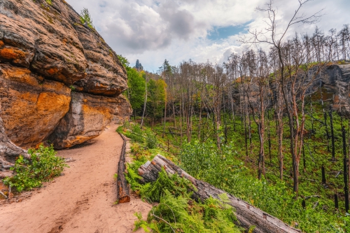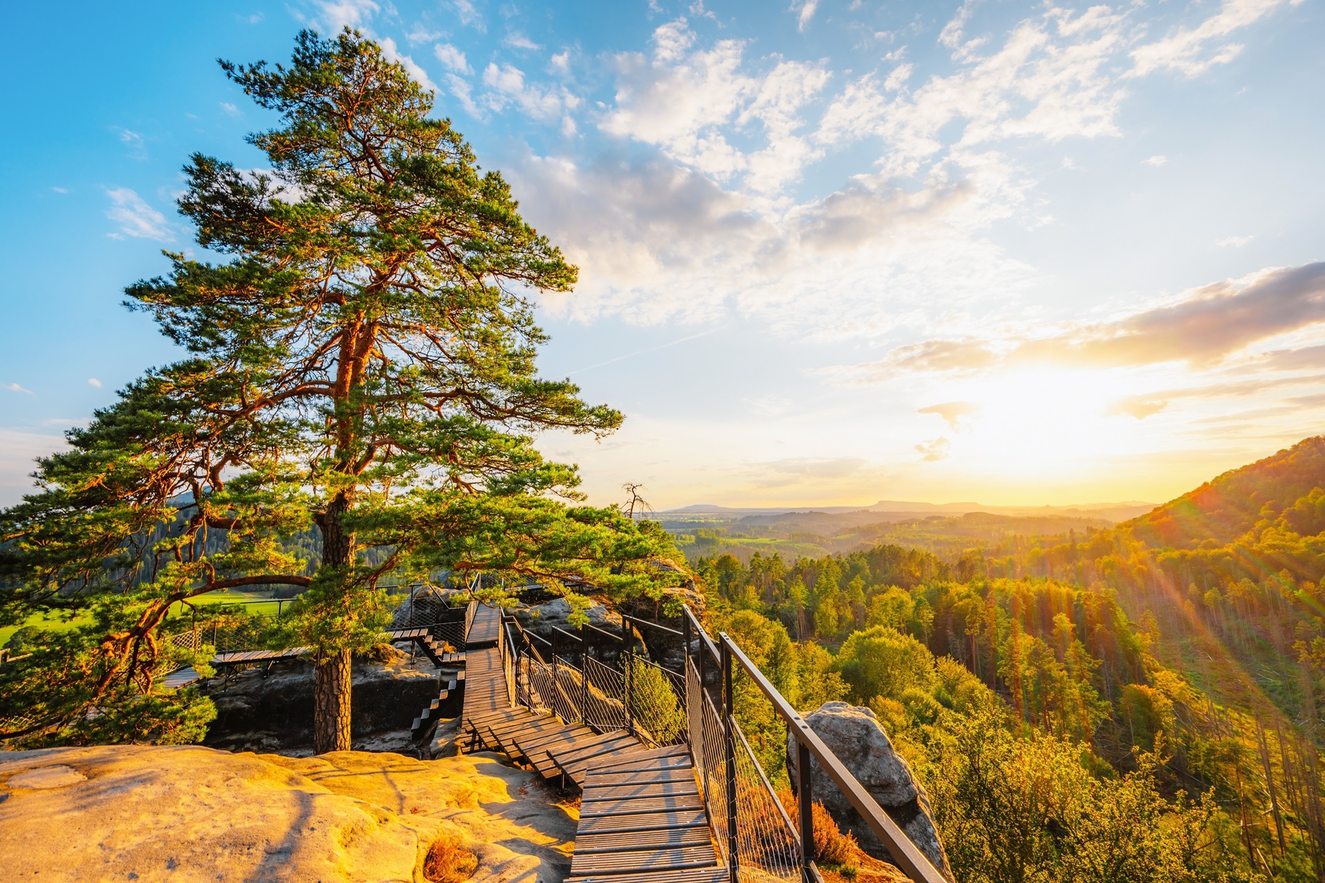 Na het ontbijt laten we Děčín achter ons en wandelen door het kasteelterrein van Thun, met de indrukwekkende barokke toegangsweg als hoogtepunt. Onderweg passeren we de Keizerlijke Uitkijkpost en volgen we de kamroute langs de rand van de diepe Elbe Canyon, de grootste zandsteenkloof van Europa. Vandaag eindigen we in Hřensko, waar we de komende twee nachten verblijven.