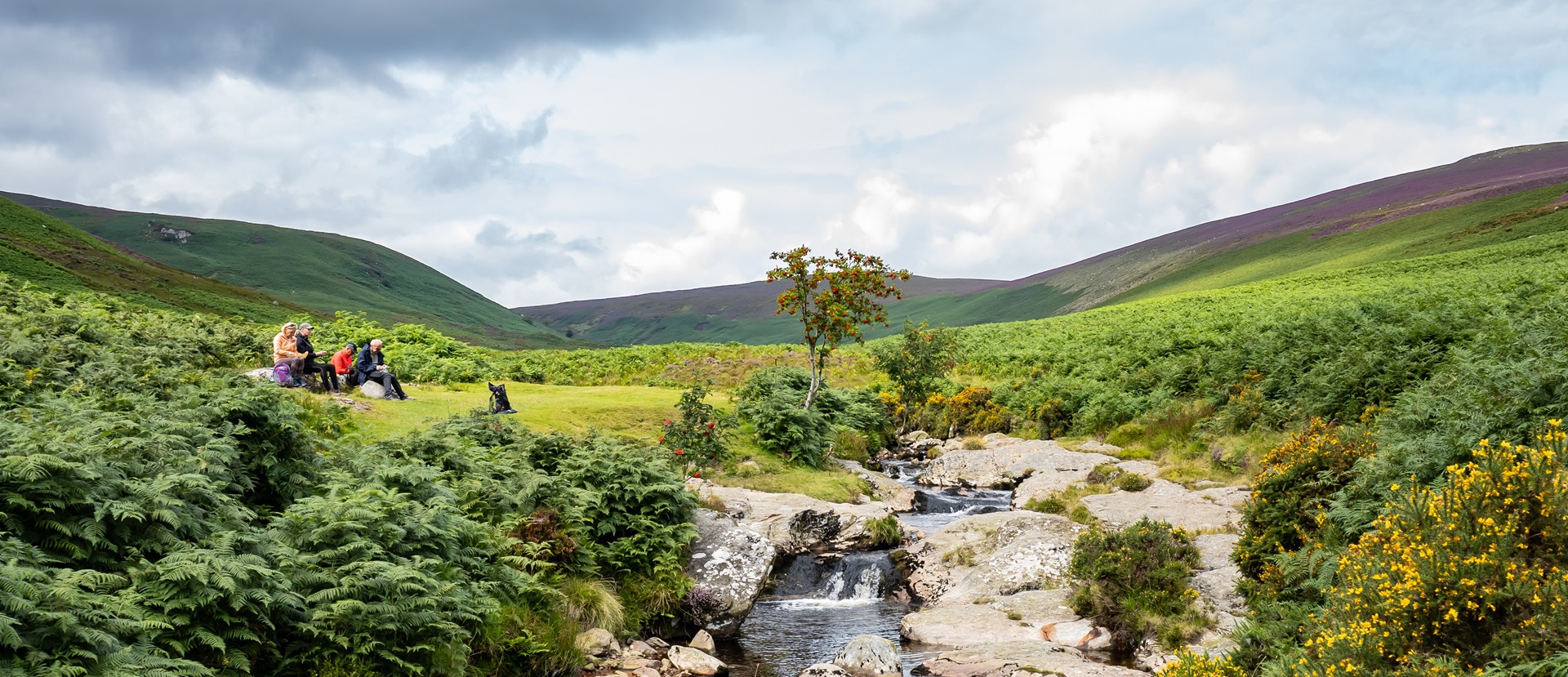 Door een heuvelachtig landschap wandelen we naar Glencree River Valley en vervolgens via het prachtige bergmeer Loch Tay naar Roundwood.