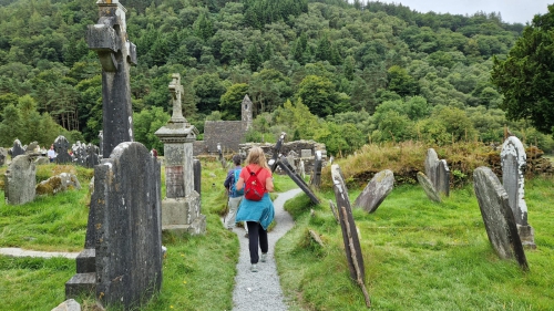 De Wicklow Way, die zich door het heuvelgebied slingert, is Ierlands oudste langeafstandswandelpad. Het landschap wordt gekenmerkt door een lappendeken van bossen, akkers en weiden. In fraai onderhouden parken vinden we oude statige buitenhuizen: zogenaamde ’mansions’. Wicklow wordt ook wel de tuin van Ierland genoemd. De wandelroute start in Marlay Park in een van de buitenwijken van Dublin. Het hoogtepunt - eigenlijk opnieuw met ’aanhalingstekens’ - is Glendalough (309 m.), een bosrijke plek met een prachtig bergmeer, omringd door hoge bergtoppen met een middeleeuwse nederzetting met vroegchristelijke kerken. Niet voor niets was Ierland het eerste land in noordwest Europa dat gekerstend werd (in de 5e eeuw) en is Saint Patrick († 461) de bekendste heilige van het land.