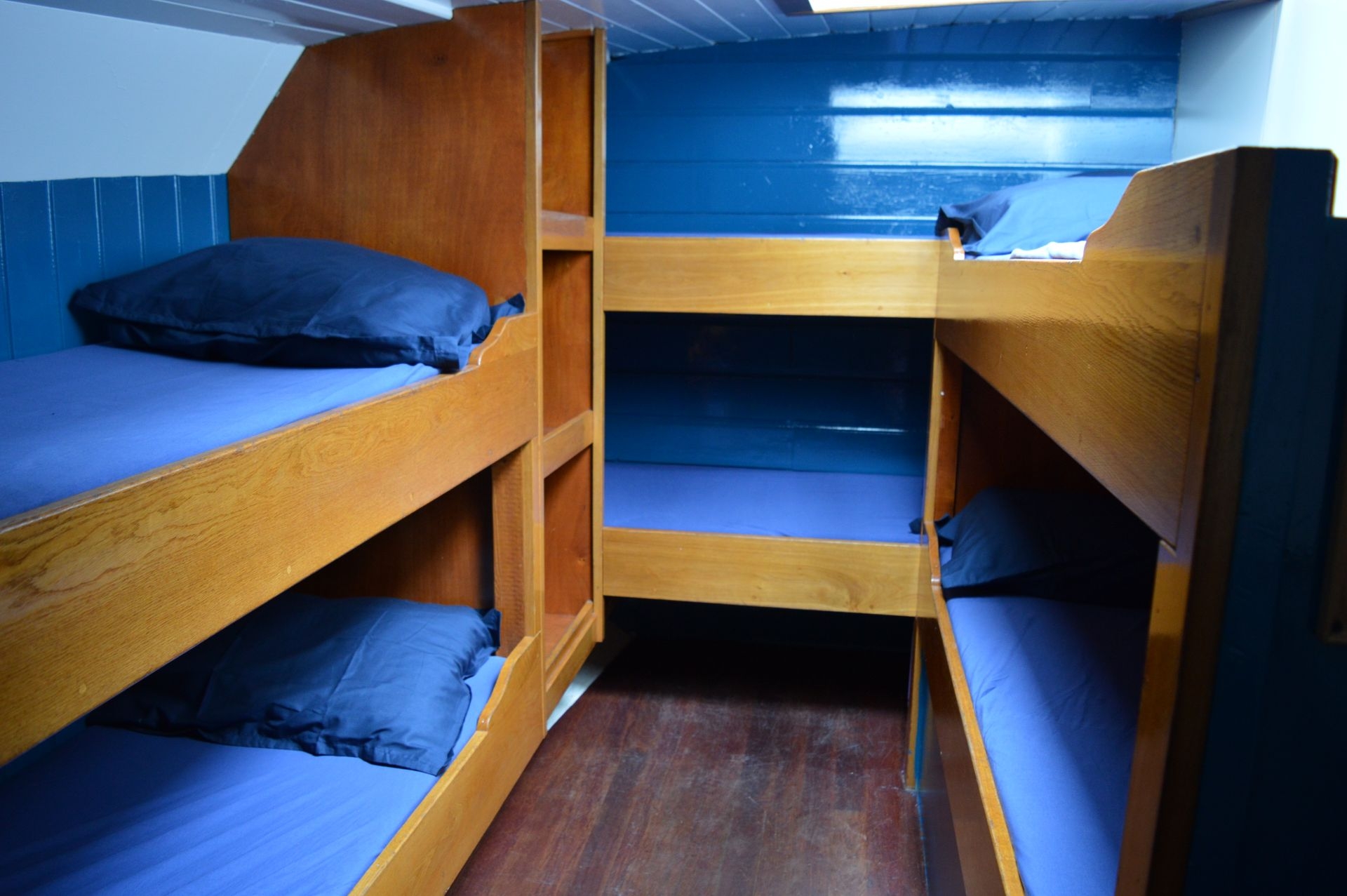 Alle slaapplaatsen bevinden zich in vijf hutten: drie tweepersoonshutten en twee zespersoonshutten, samen geschikt voor maximaal 16 gasten. Aan boord zijn twee toiletten. U kunt gebruikmaken van de douches in de havens aan wal.