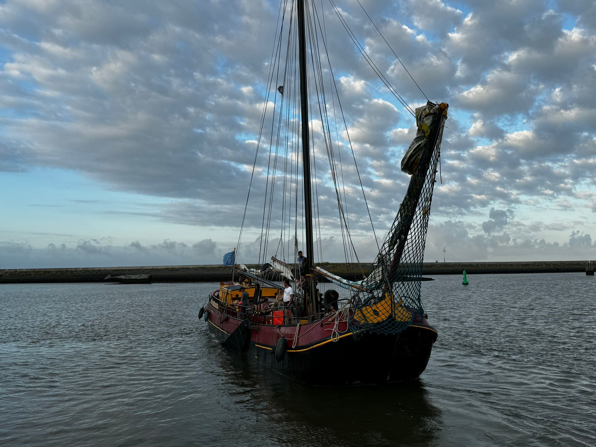 Zeilen op de Vrijbuiter is actief en echt. Samen met de schipper Wiebe, de kok en de scheepsmaat wordt er hard gewerkt: zeilen hijsen, schoten en bakstagen aanhalen, zwaarden bedienen bij het overstag gaan. Alle lieren worden met de hand bediend. Er is een motor, maar we laten ons vooral leiden door de wind. Zeilen op zo’n grote tjalk is hollen of stilstaan: bij manoeuvres is het alle hens aan dek, op andere momenten is er alle tijd om te genieten van de stilte, de natuur, het water en elkaar. Sinds 2023 vaart Vrijbuiter volledig elektrisch. Daarmee is het het eerste gecertificeerde elektrische schip in de bruine vloot – met als missie: van een bruine vloot een groene vloot maken.