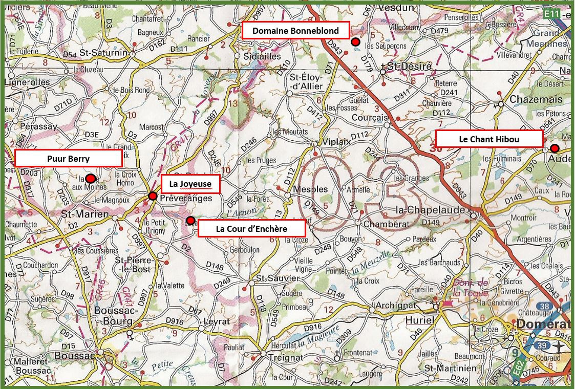 Zes koppels of families reisden hun droom achterna. Het bracht hen naar het groene hart van Frankrijk, de Berry en de Bourbonnais. Verspreid over de streek kochten ze optrekjes die na veel verbouwingen en renovaties werden omgetoverd tot sfeervolle gîtes, chambres d’hôtes en woonboerderijen. Op de pedalen trekt u door het Franse boerenland van de ene accommodatie naar de andere. De eigenaren stellen zichzelf en hun accommodatie graag aan u voor. Klik hier.