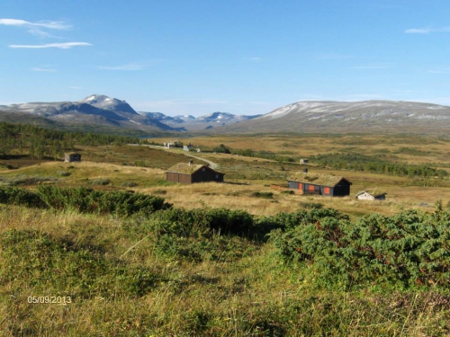 Per transfer (ca. 45 minuten) naar Hjerkinn op de Dovrefjell en verder per bus naar Snoheim, waar zich op 1474 meter hoogte een berghut bevindt. Dovrefjell staat bekend om de wilde muskusossen, dus houd uw ogen goed open! Tijdens de busrit is het al mogelijk dat u ze tegenkomt. De wandelroute kent niet zoveel spectaculaire hoogtemeters (ca. 475 m), maar is een fantastische route als het gaat om de flora en fauna in dit speciale gebied. Eindpunt van vandaag is Kongsvold vanwaar u weer teruggebracht wordt. Na een lange wandeldag zal er wederom een lekker diner voor u klaar staan.
