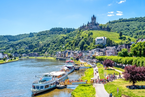 Het leuke van de Moezel is dat er onderweg zo veel te zien is, want ieder uur volgt er wel weer een nieuwe verrassing. Talloze historische ridderkastelen bijvoorbeeld, vaak stategisch gelegen op een heuveltop. En omdat de rivier zo kronkelig is, verandert het uitzicht permanent.