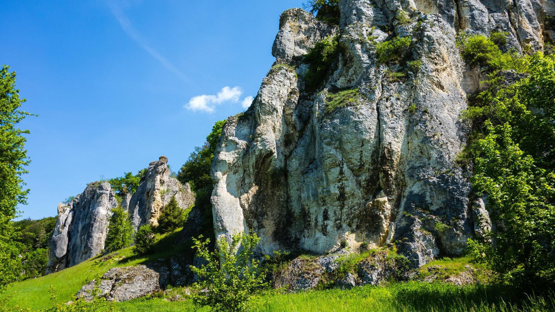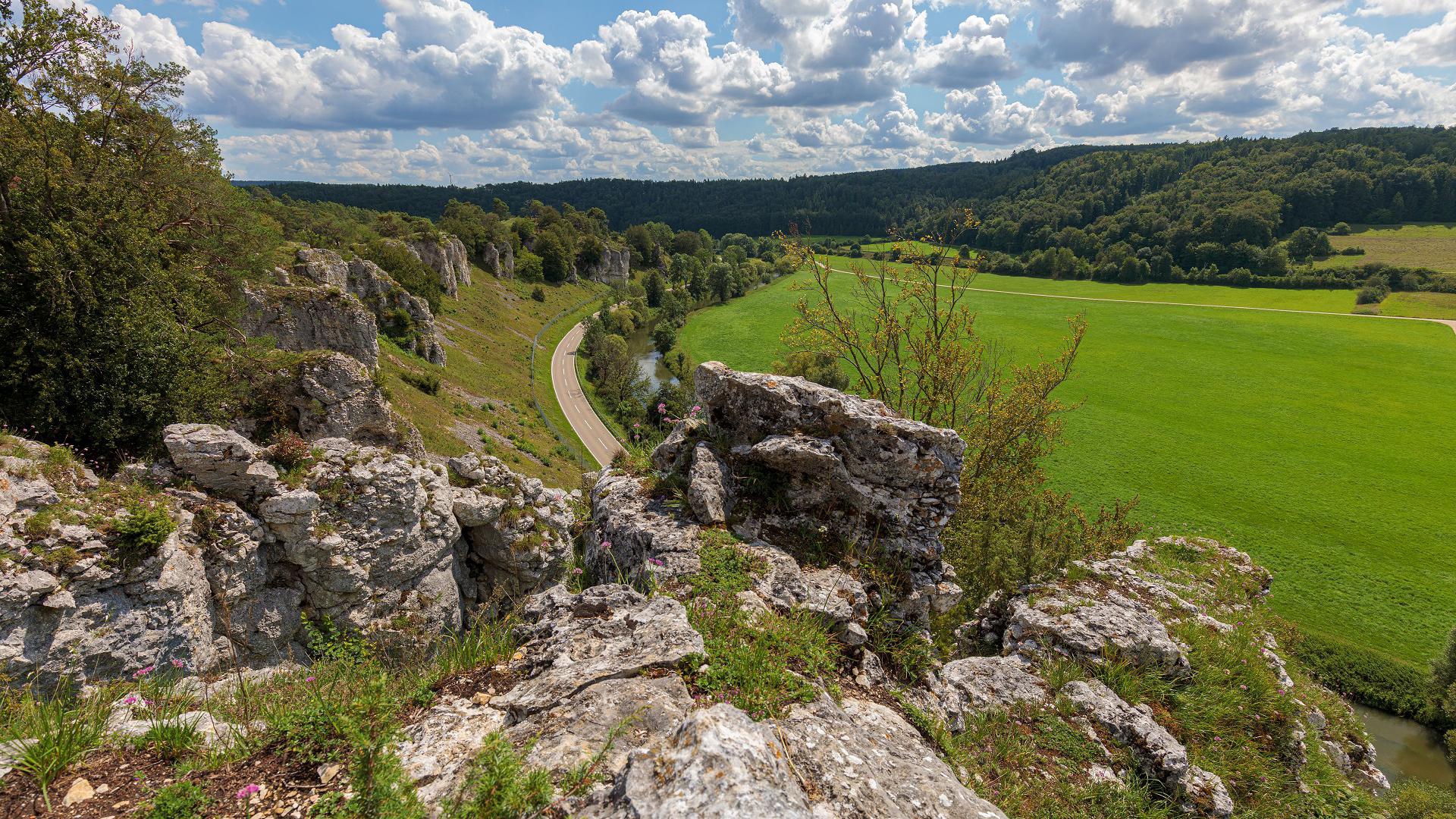Via een hooggelegen pad met prachtig uitzicht wandelt u richting Solnhofen. Deze beroemde mijnplaats is vooral bekend om de Solnhofener kalksteenplaten en de vindplaats van fossielen die meer dan 140 miljoen jaar oud zijn. Kort daarna wacht een indrukwekkende en veel gefotografeerde bezienswaardigheid: het natuurmonument Twaalf Apostelen. Deze rotsformatie bestaat uit steile kalkzuilen die oprijzen uit de omringende jeneverbossen en heidevelden. De route brengt u verder naar Dollnstein, het hart van de oer-Donauvallei.