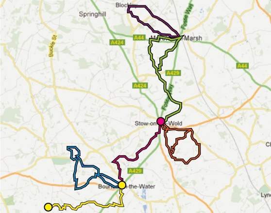 Rondwandeling Bourton-on-the-water (ca. 12 of 17 km/4 of 6 uur)