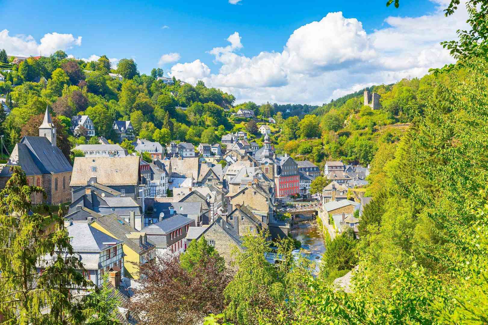 Vanuit het vakwerkdorp Monschau gaat u weer op pad. De rivier de Roer, die door de oude lakenweversstad in het dal kabbelt, zal u vandaag steeds vergezellen. Maar eerst wandelt u nog op de heuvel en kijkt u nog een keer terug naar Monschau voordat u het bos induikt. Op en af gaat u nu verder totdat het glinsterende water van de Perlenbachstuwdam u begroet. In het Nationale Park-Tor Höfen kunt u informatie krijgen over de wilde narcissen van de Eifel en een kleine pauze in het café inlassen.
