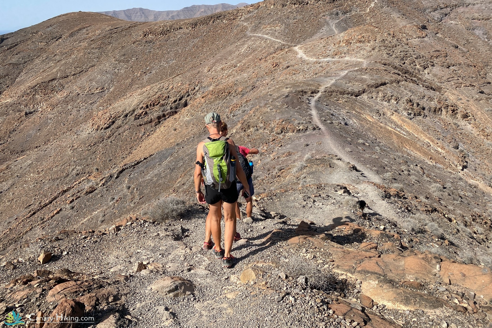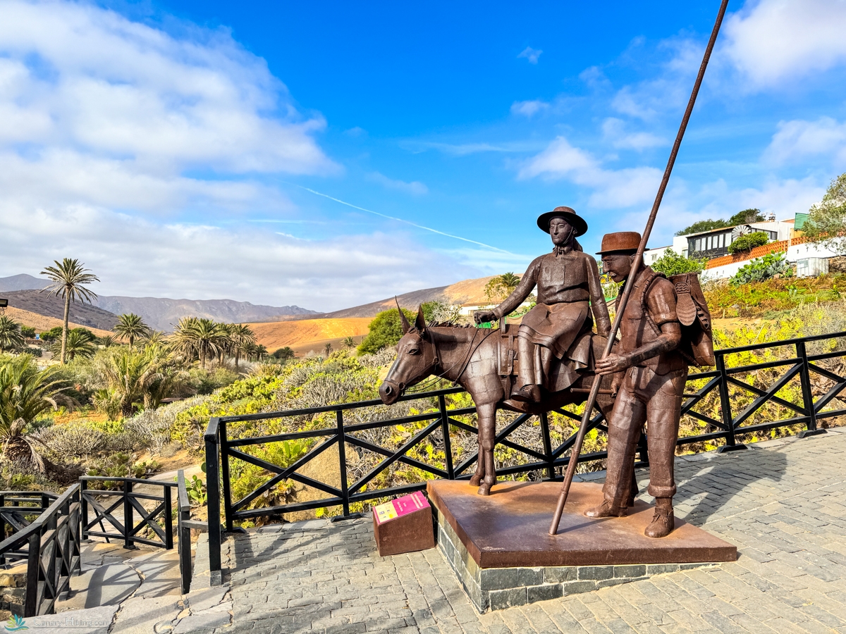 Na Valle de Santa Inés gaat u echt stijl omhoog. Boven komt u aan bij een uitkijkpunt met twee reusachtige beelden, de 'Estatuas de Guise y Ayose'. De bronzen beelden van 4,5 meter hoog verbeelden de twee Guanche koningen Guise en Ayose, heersers uit het verre verleden van Fuerteventura. Vanaf hier heeft u een imposant uitzicht over het noordoosten van het eiland, waar u vandaan bent gekomen. Bij helder weer zijn zelfs Los Lobos en Lanzarote waar te nemen aan de horizon. Het pad gaat daarna bergafwaarts richting Betancuria.
