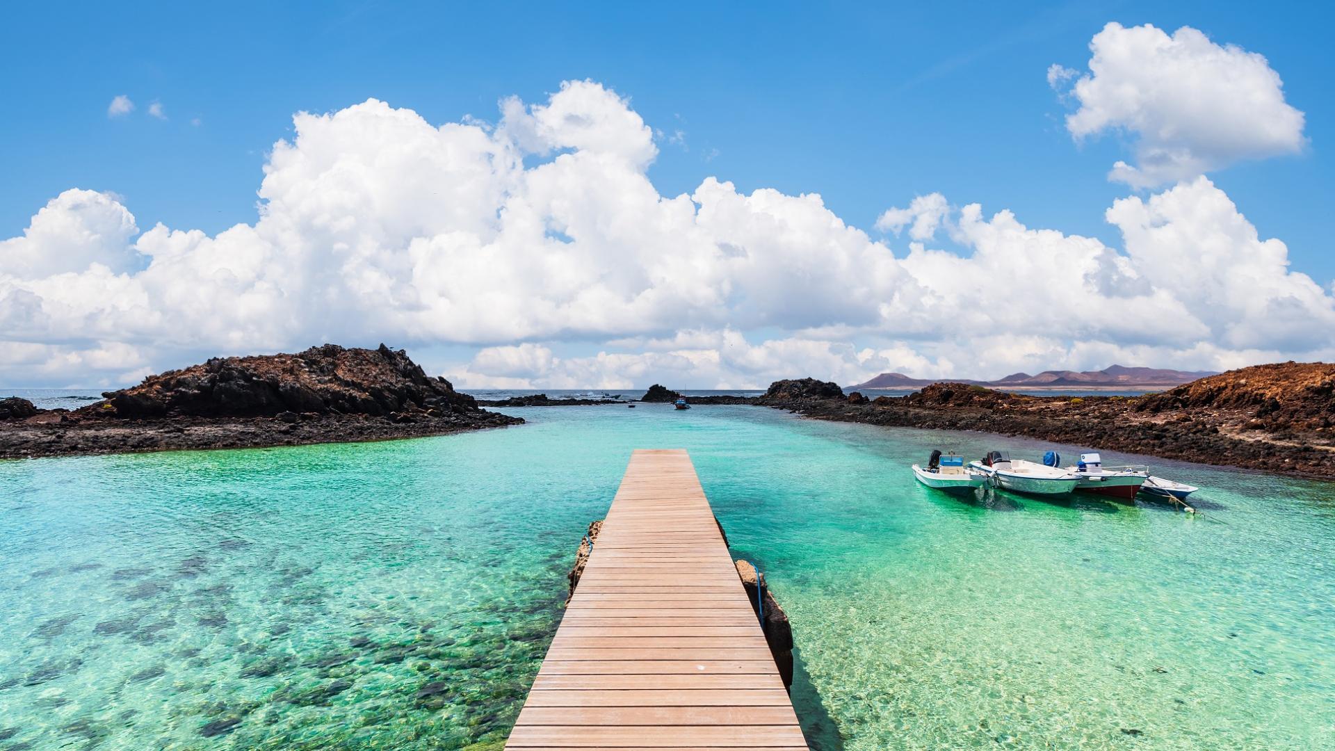 U vertrekt per boot naar het eilandje Los Lobos voor de eerste etappe van de trektocht. Het 6 km² grote 'wolveneiland' dankt zijn naam aan de vele monniksrobben (in de volksmond zeewolven genoemd) die hier in het verleden in groten getale te vinden waren. U komt met het bootje aan in een prachtig mooie baai bij de 'Casas del Puertito', niet meer dan een gehucht met enkele stenen huizen en een bescheiden restaurantje. U maakt een wandeling over het eilandje en neemt daarna de boot weer terug naar Corralejo voor de overnachting.