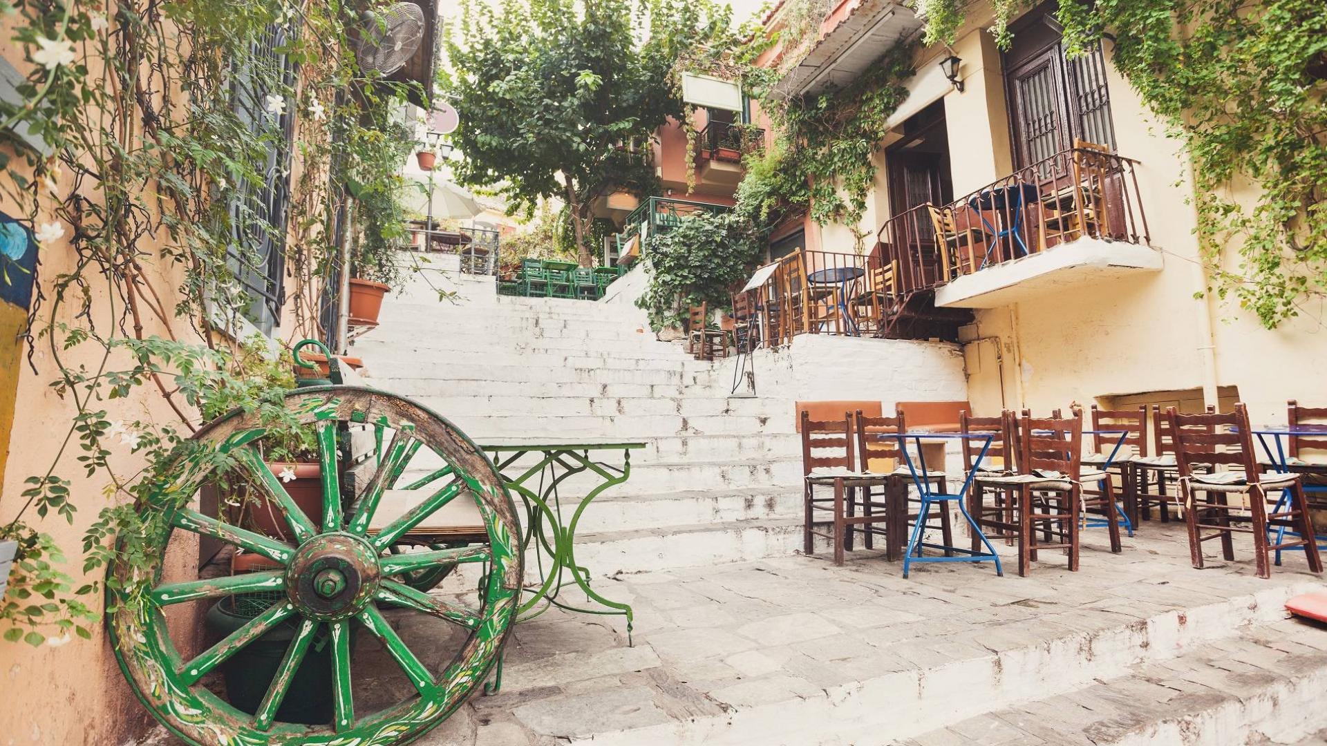 ’s Ochtends begint u met een lange stadswandeling door het centrum van het fascinerende Athene. Op de Evripidou zijn winkels gespecialiseerd in kruiden, olijven of worst. Om de hoek is de vlees-, vis- en groentemarkt, een drukte van belang met marktkooplui die luidkeels hun waar aanprijzen. Op weg naar Kolonaki, een chique buurt tegen de Likavittos berg aangeplakt, passeert u de statige universiteitsgebouwen. Achter het parlement, met de fotogenieke wisseling van de wacht, liggen de Nationale Tuinen. In dit schitterende park kunt u heerlijk picknicken voordat u verder loopt naar de wijk Anafonitika. Via smalle steegjes met witte huisjes en onder het Parthenon door naar de Aeropagus heuvel loopt u letterlijk in de voetsporen van apostel Paulus. De wandeling eindigt in Psirri, waar het hotel staat, een wijk met overdag veel werkplaatsen voor ambachtslieden, 's avonds met populaire terrasjes voor locals om te zien en gezien te worden.