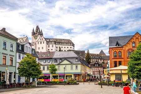 Per trein naar Diez (niet inbegrepen, ter plaatse te betalen ca. € 8,-, 31 min.). U start in het historische centrum van Diez. De Lahnwanderweg loopt de stad uit in de richting van Fachingen. Hier komt het beroemde geneeskrachtige water vandaan, waarvan de bron in 1740 werd ontdekt, en korte tijd later internationaal verkocht werd in kannen gemaakt in Kannenbäckerland. De volgende bestemming is Balduinstein met de pittoreske kasteelruïne. Schloß Balduinstein werd gebouwd vanaf 1319. De buitenmuren, die tot 1,60 m dik zijn, zijn nog gedeeltelijk bewaard gebleven. Niet ver van de kasteelruïne Balduinstein bereikt u Schloß Schaumburg. De bouwgeschiedenis gaat terug tot de 10e eeuw. De Schaumburg dankt het huidige uiterlijk aan aartshertog Stefan van Oostenrijk. In de loop van de revolutie in 1848 moest hij zijn geboorteland Hongarije verlaten en van 1850-55 herbouwde hij de Schaumburg uitvoerig in neogotische stijl. U loopt door naar de Camberger Bogen, een 700 m lange tunnel die in 1926 gemaakt is om de Lahn beter door te laten stromen. Via Steinsberg loopt u verder naar Hohen Ley, waar de Lahnhöhenweg samenkomt met het Europese langeafstandswandelpad E1. Vanaf hier heeft u weer een indrukwekkend uitzicht op de Lahn, het kleine Rupbachtal en de Schaumburg, voordat u de eindbestemming Laurenburg van deze etappe bereikt.