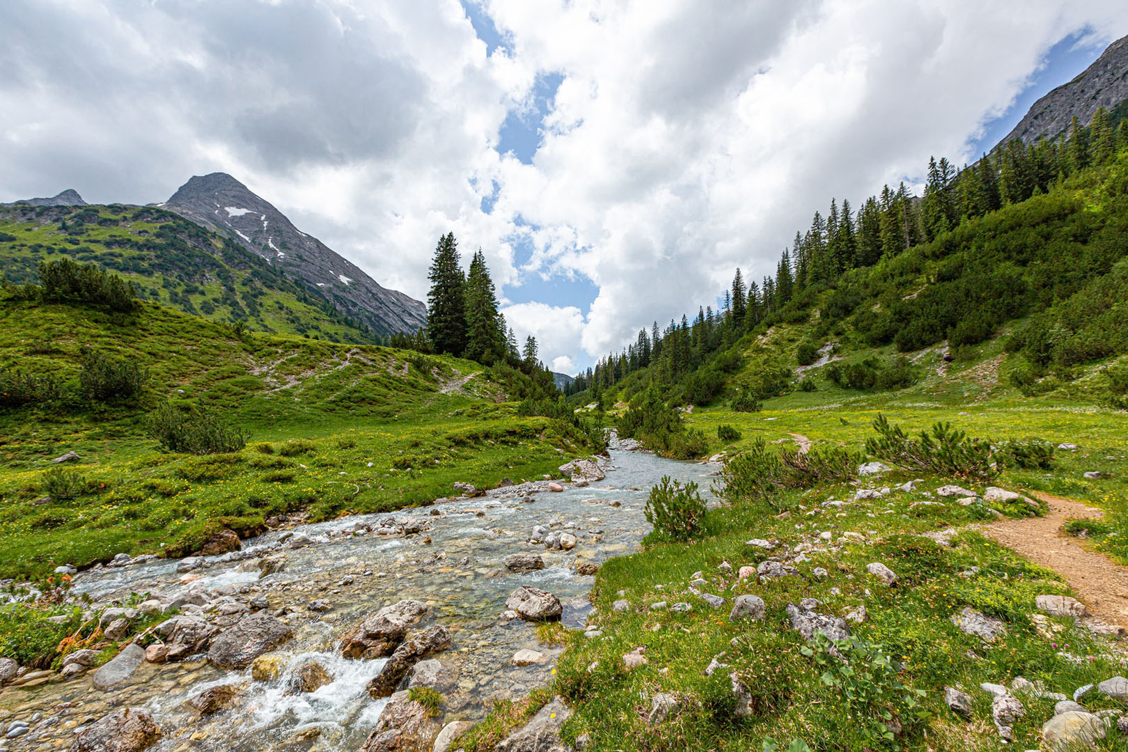 Tijdens de etappe van vandaag wandelt u de hele dag een beetje boven de rivier richting het noorden. U wandelt door bossen en door weilanden richting het dorp Warth. Zelfs in het midden van de zomer kunt u op dit traject af en toe nog wat sneeuw tegenkomen. Via een kleine hangbrug leidt het pad verder over de rivier Krumbach naar Lechleiten. Eenmaal hier neemt u de bus naar Holzgau (inbegrepen) om de dag af te sluiten met een prachtig bergpanorama. Overnachting in Holzgau.