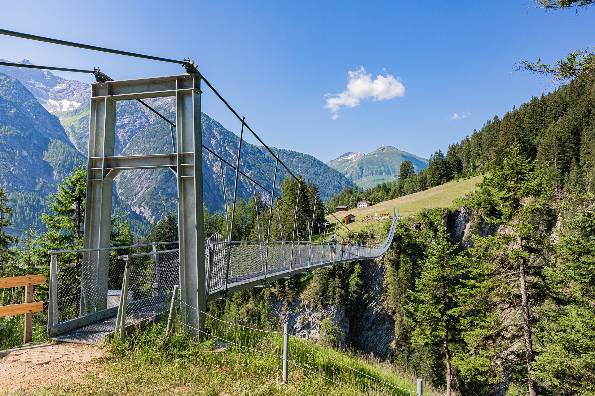 Geen hoogtevrees hebben is absoluut een voordeel tijdens de etappe van vandaag. Vanuit Holzgau begint u aan een spectaculaire hangbrug die op 110 meter hoogte de Höhenbach-kloof overspant. Als alternatief is er het minder wiebelige pad langs de Simms-waterval. In beide gevallen komt u bij de Schiggen uitkijktoren. De route vervolgt naar de rustplaats 'Schöne Aussicht' en langs het Josef-Anton-Koch-pad richting het dorp Bach. En tot slot wandelt u over brede bospaden naar de overnachtingsplaats: Elbigenalp.