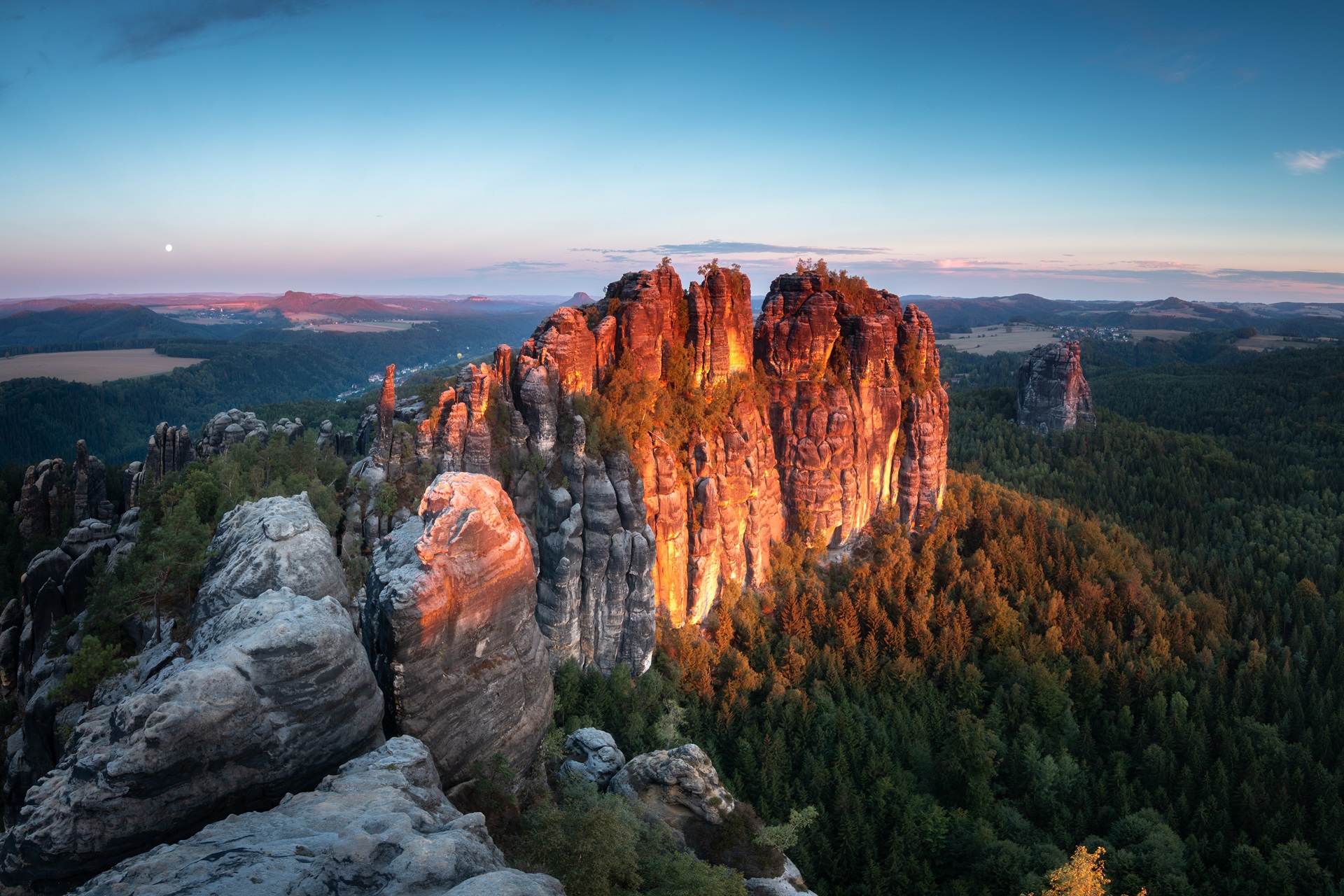 Via Thürmsdorf en Weißig leidt de laatste etappe van de Malerweg naar het Rauenstein-massief. Vanaf de top heeft u een prachtig uitzicht op de Basteibrug aan de andere kant van de Elbe. Via de heuvels wandelt u verder naar Pirna. Vervolgens pakt u de sneltrein naar Dresden waar u overnacht (treinticket inbegrepen).