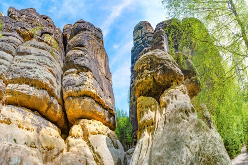 Vandaag gaat u direct omhoog naar het Schrammstein-uitzichtpunt en wandelt u langs het bergpad door het Schrammstein-massief. Via de Großer en Kleiner Dom komt u bij de Affensteinweg, die u naar de Lichtenhainer Wasserfall leidt. Via de Kuhstall met de luchtladder bereikt u het technische monument Neumannmühle. Met de bus keert u terug naar het Kirnitzschtal of Bad Schandau. U verblijft de nacht in Kirnitzschtal of Bad Schandau.
