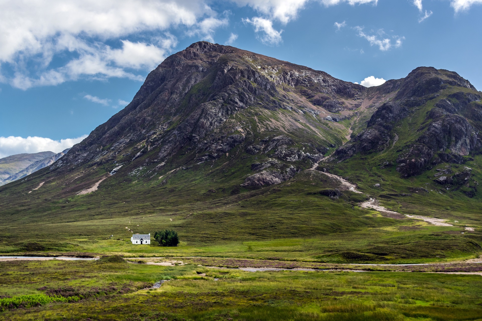 Daarna volgt een van onze favoriete delen van de West Highland Way! Vanaf Inveroran loopt u langs Loch Tulla en volgt u de militaire weg over de Rannoch Moor, een prachtig, eenzaam en open gebied dat ooit bedekt was door een gigantische ijskap en tegenwoordig een uitgestrekt veengebied is. Er is geen beschutting; bij slecht weer kan het hier guur zijn, terwijl het bij mooi weer gewoonweg adembenemend is. Het oorspronkelijke hotel uit de 17e eeuw bij Kingshouse is vervangen door een gerenoveerd hotel dat een ongeëvenaard uitzicht biedt op Buachaille Etive Mor, wellicht de meest gefotografeerde berg van Schotland.
