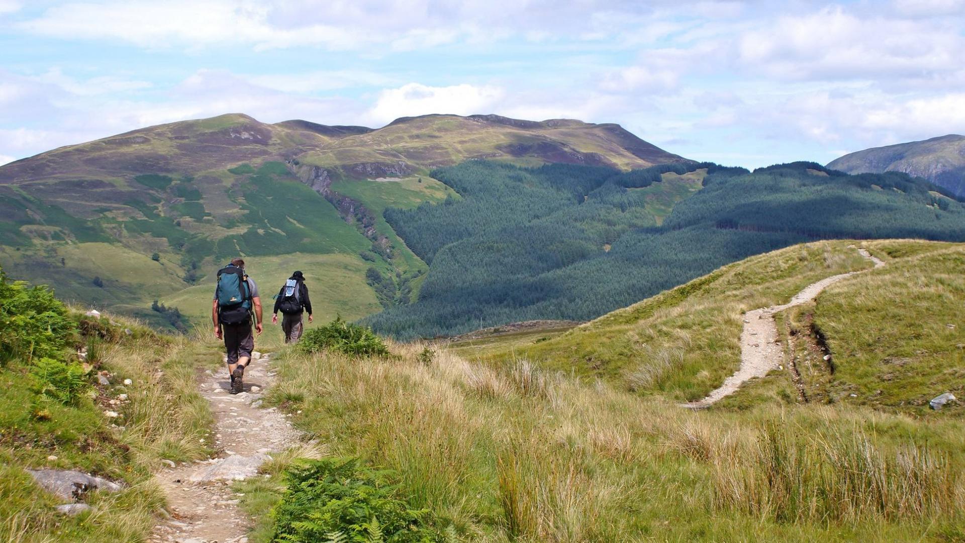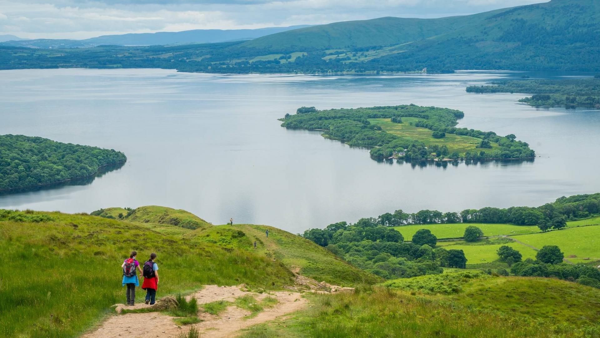 Wanneer u Drymen verlaat, begint u te klimmen richting Conic Hill, die precies op de Great Divide ligt – de natuurlijke grens tussen de Hooglanden en Laaglanden van Schotland. De klim is vrij steil, maar eenmaal boven wordt u beloond met prachtige uitzichten over Loch Lomond, het grootste zoetwatermeer van Groot-Brittannië, dat een oppervlakte van 70 km² beslaat. Vervolgens daalt u via een steil pad af naar Balmaha, een klein dorpje dat beschut ligt in een baai aan de oever van het schilderachtige Loch Lomond.